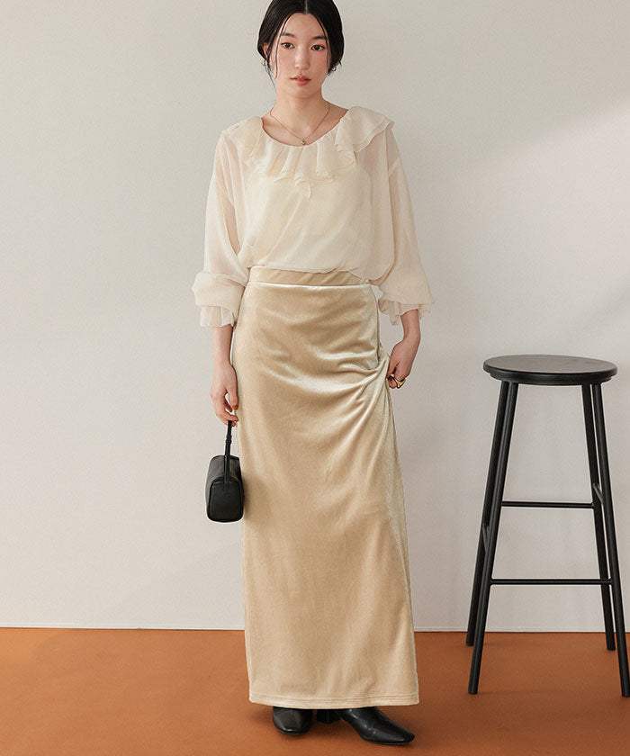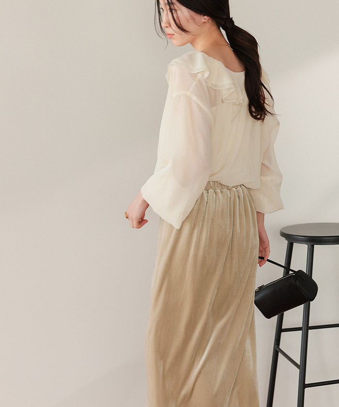 ・裾に向かって少しゆとりがあるので、従来のIラインとは違い、動きがあり大人っぽいシルエットに仕上げました