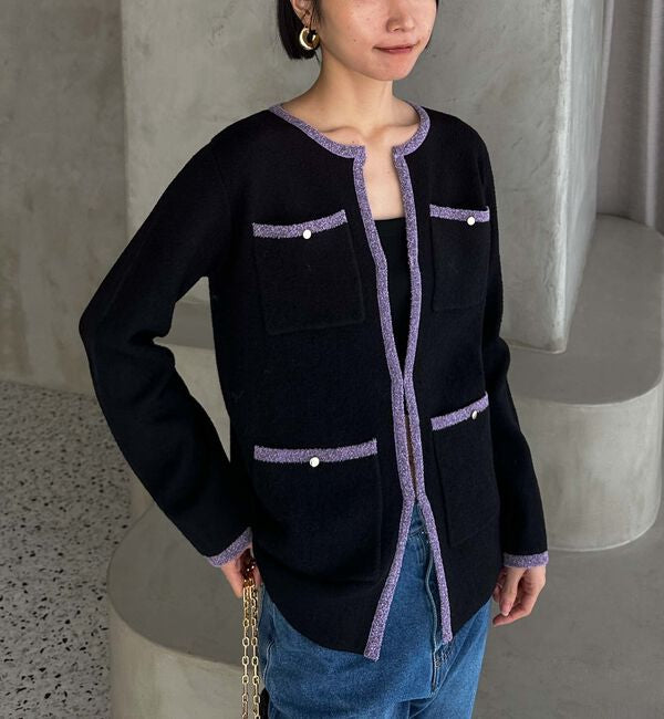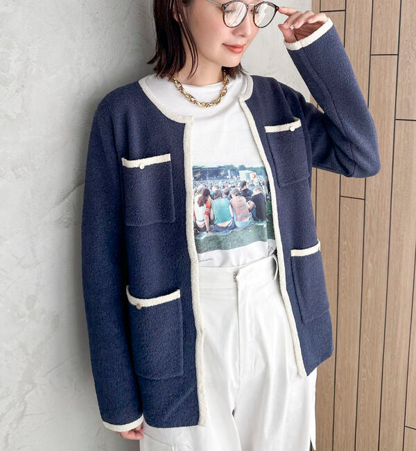 ・カーディガンのようにさっと羽織れる気軽さがうれしいニットジャケット