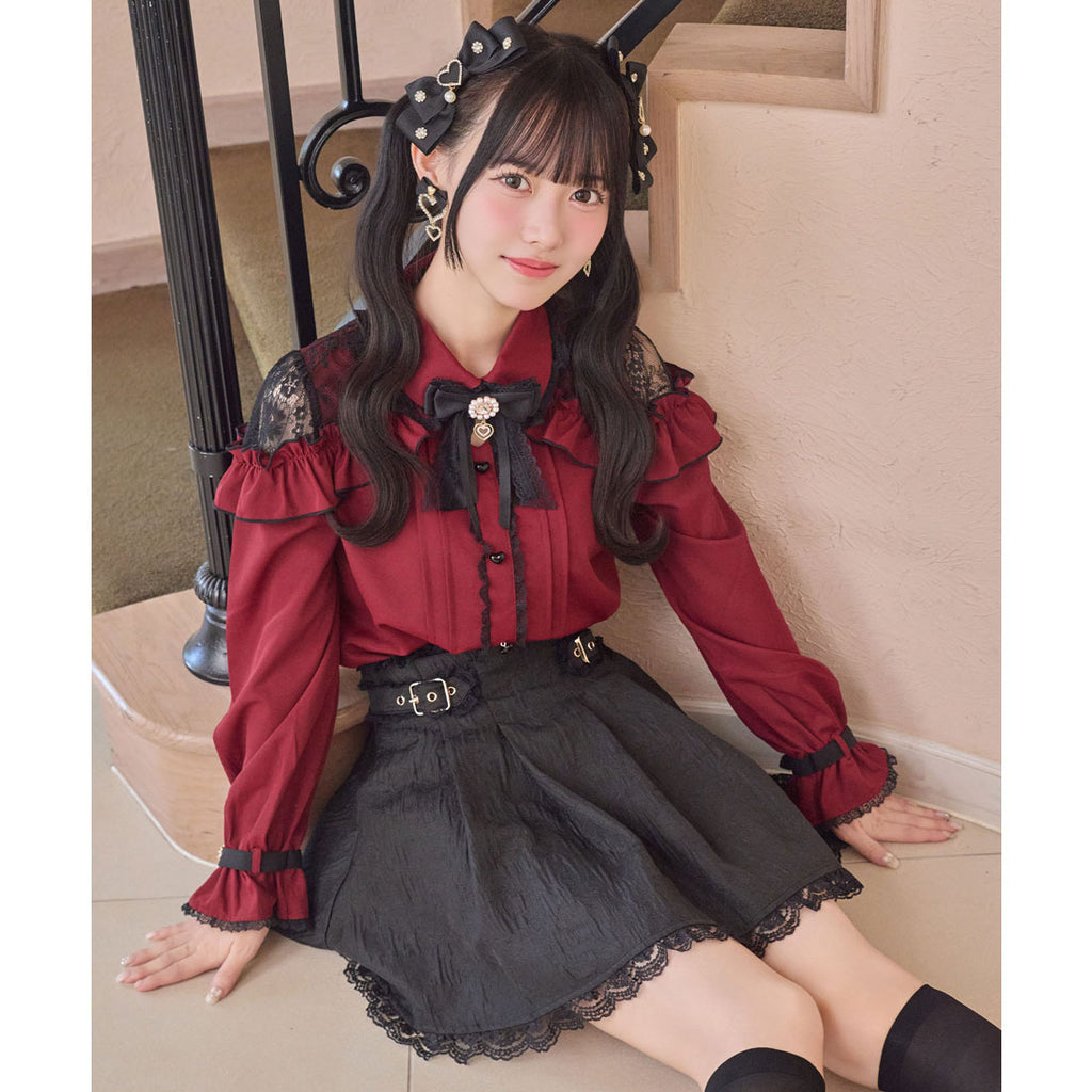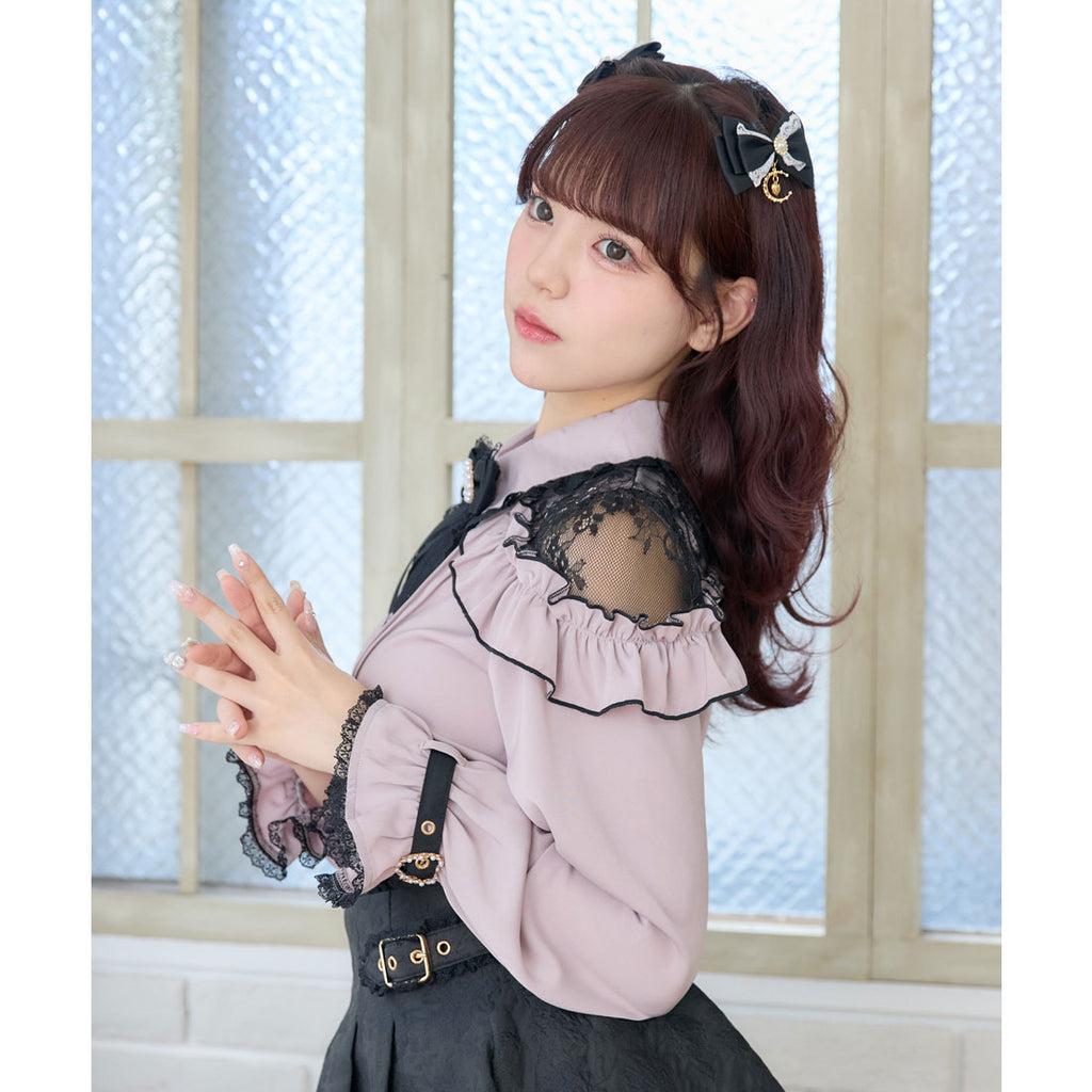 メローフリルがコーディネートを華やかに彩り、ショルダーに施されたレースが抜け感を演出するブラウス。
