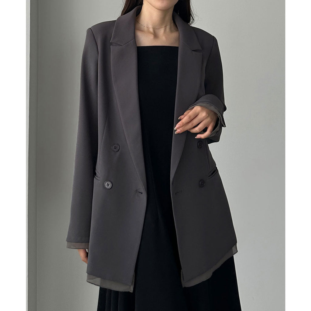 袖口と裾にシアー素材をレイヤードしたこなれ感たっぷりな1枚。