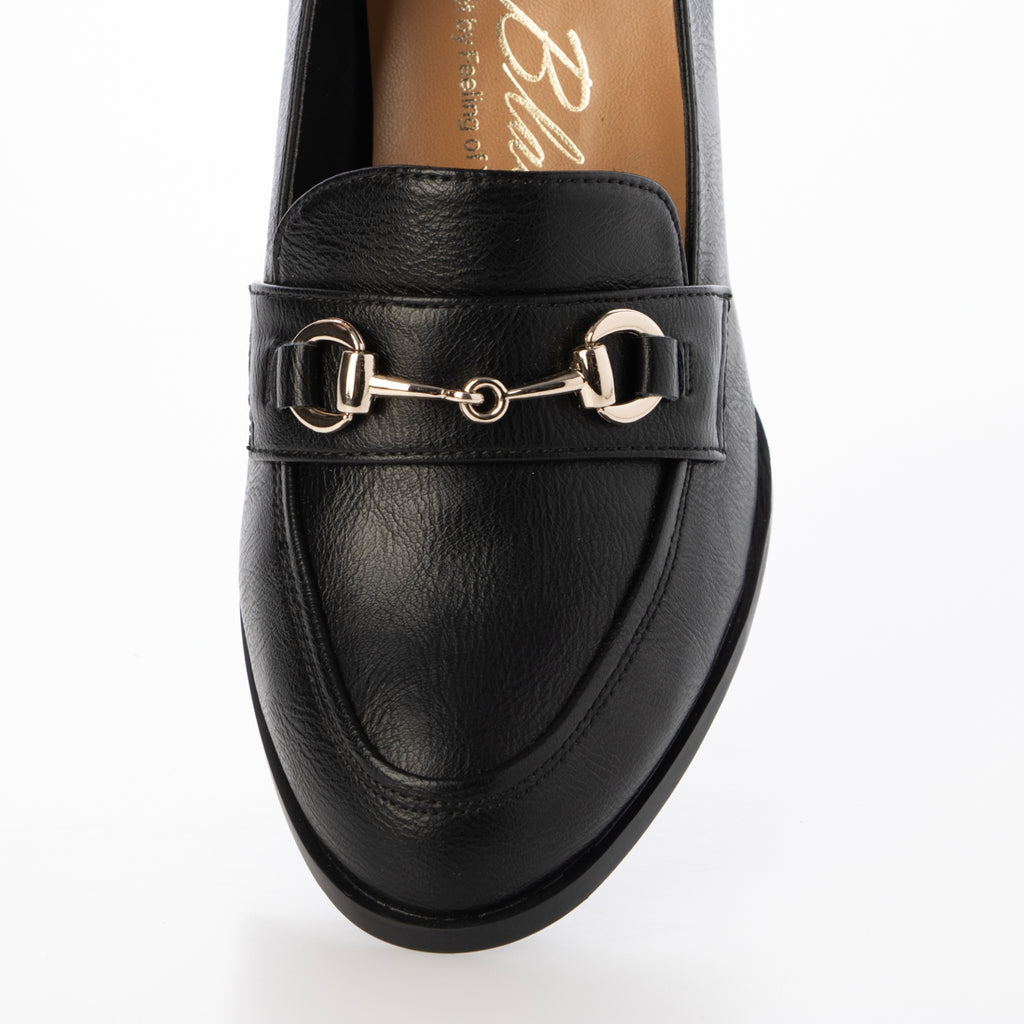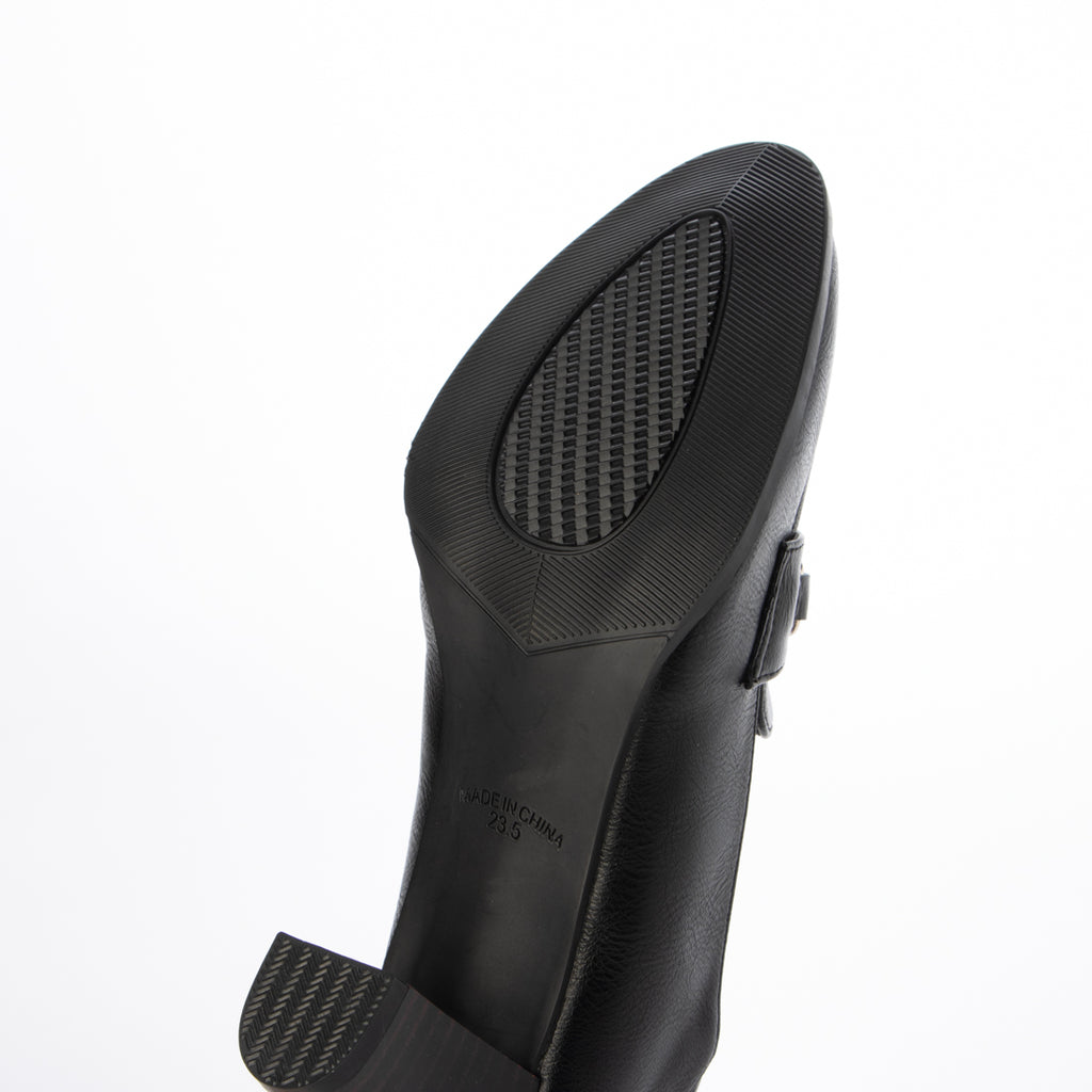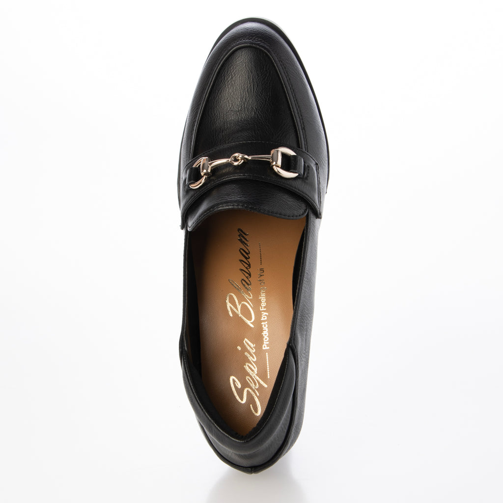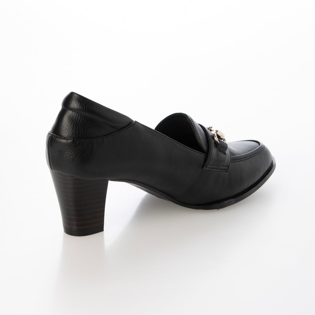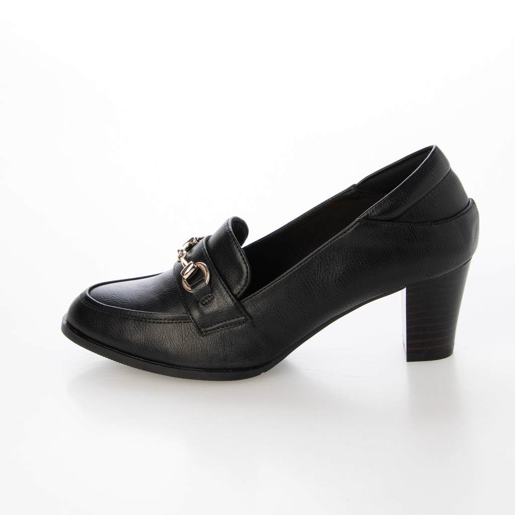 上品なビット金具が煌めく、ヒール付きローファーパンプス。