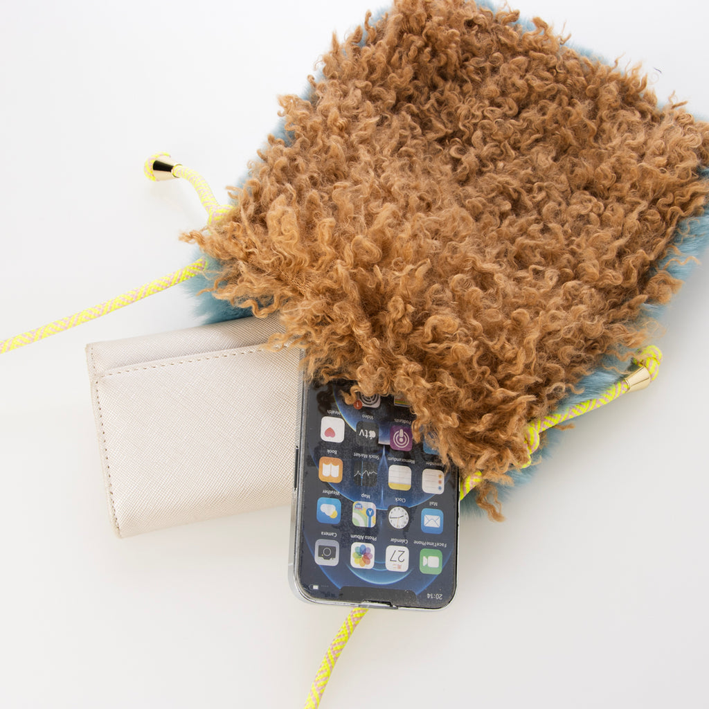 フェイクファースマホポシェット ショルダーバッグ レッキス風×ラム風