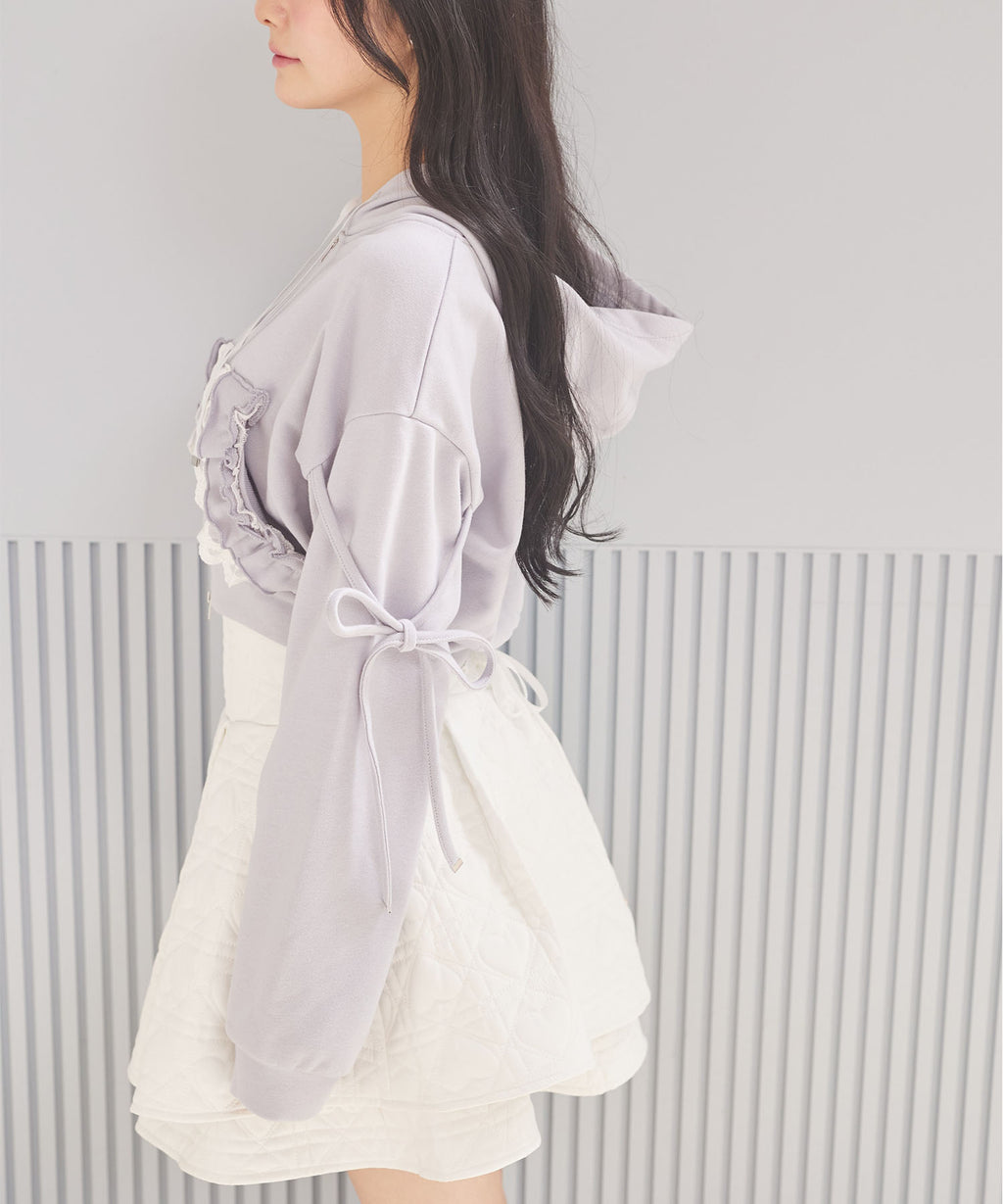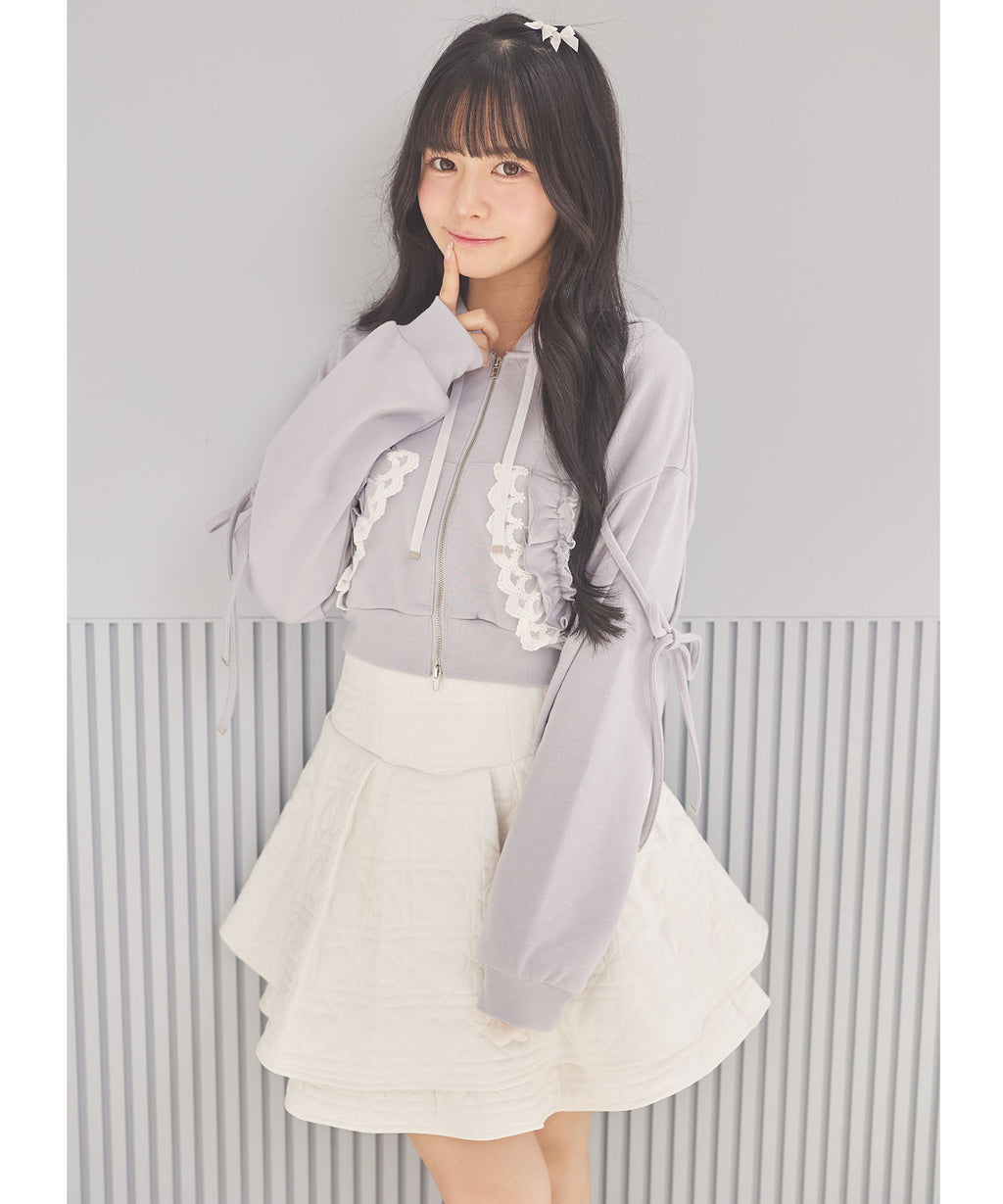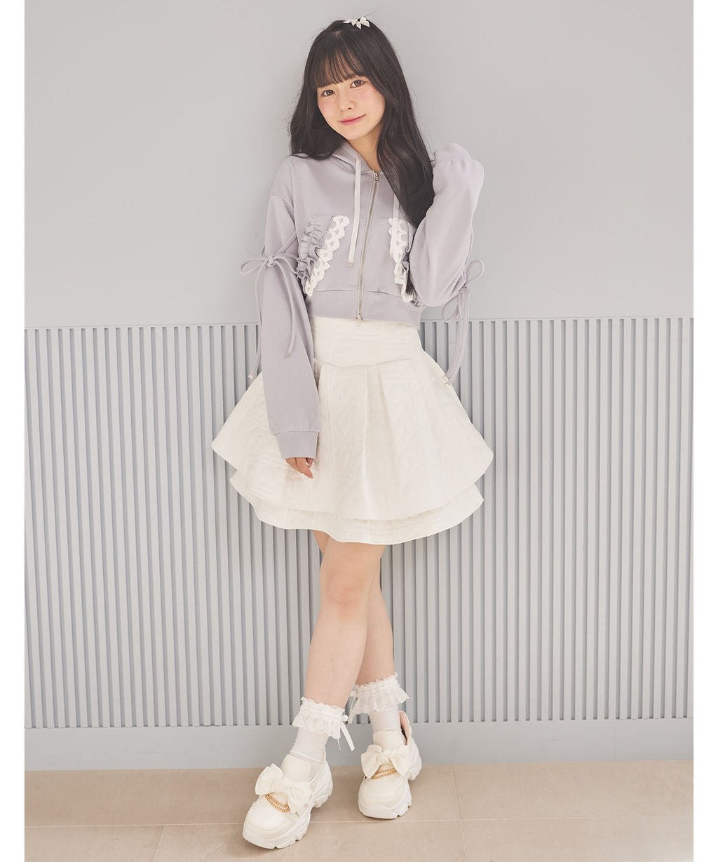 「リボン付きドロストレースフリルスカート」と合わせれば、