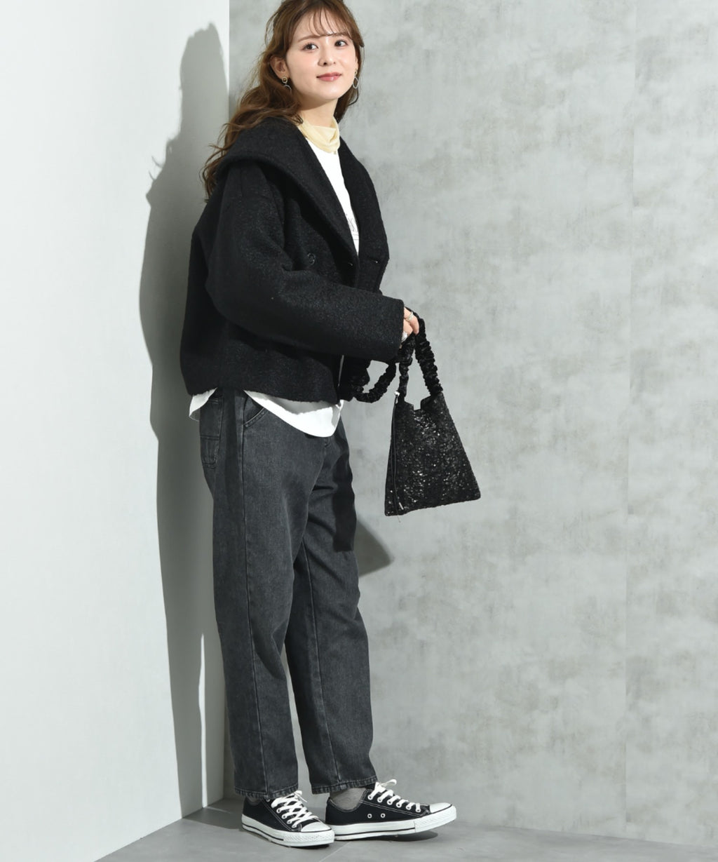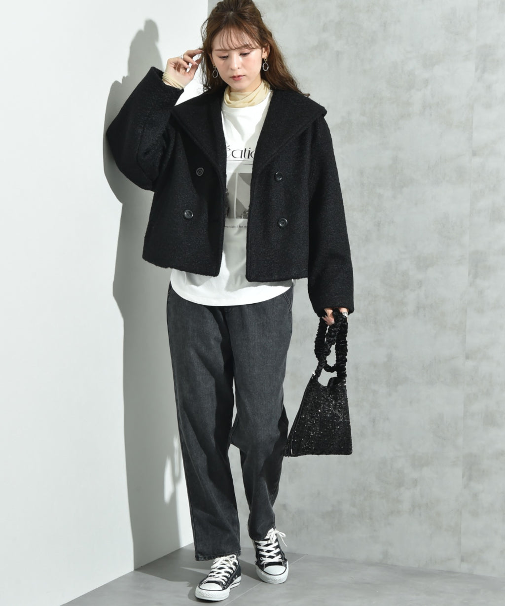 ショート丈ながらも存在感があり、ボトムとのバランスも絶妙。