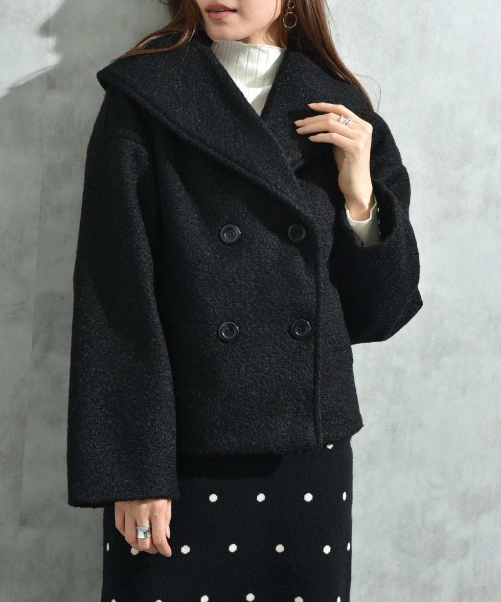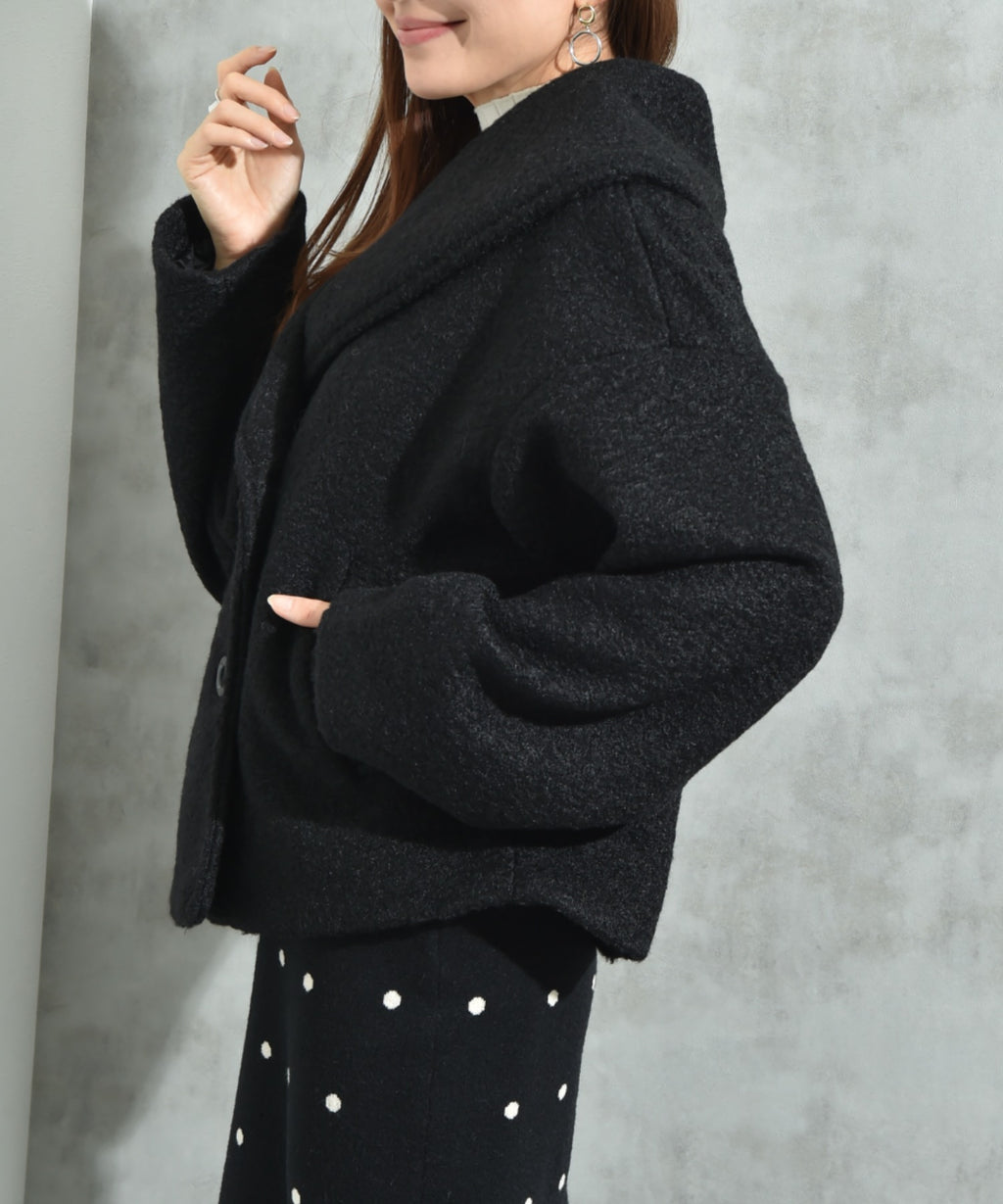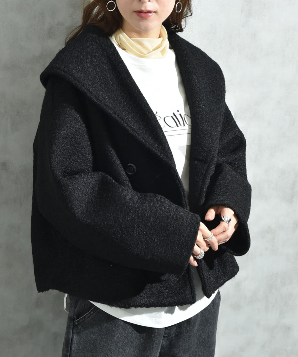 インタープラネット INTERPLANET フェイクウールリングニットショートコート