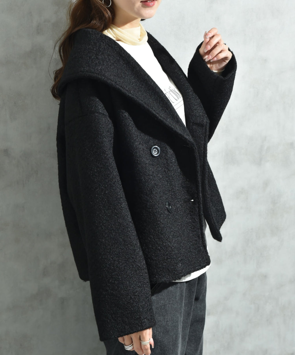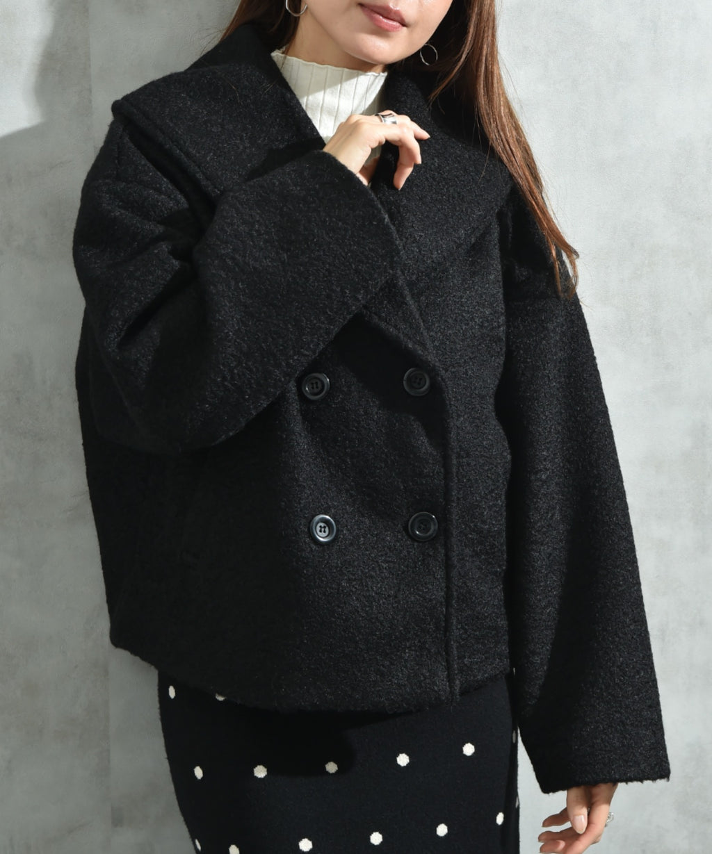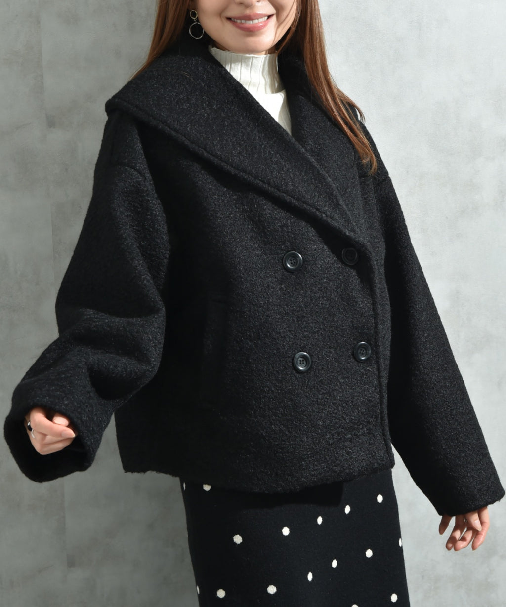 インタープラネット INTERPLANET フェイクウールリングニットショートコート