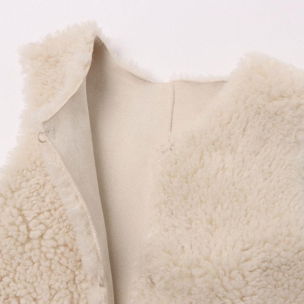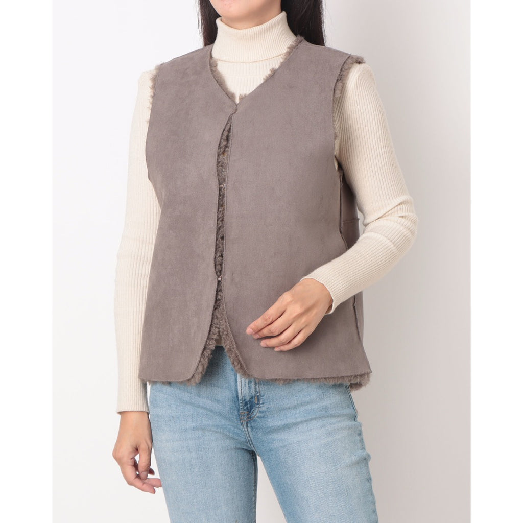 表面スエード、裏面プードルファーを使用したリバーシブルのベストです。