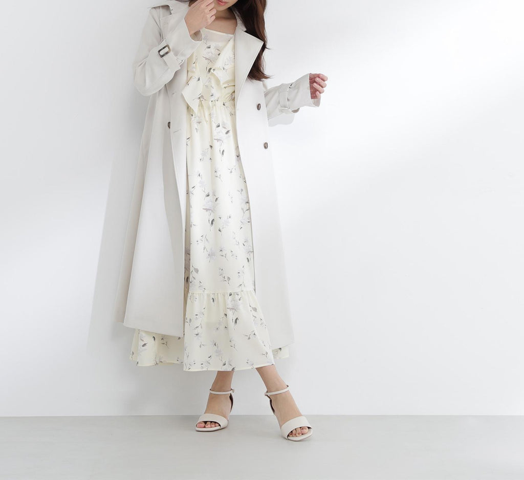 上品な色使いのフラワープリントが甘くなりすぎず、デイリーにも特別な日にも活躍してくれるワンピース。軽やかに揺れるラッフルディテールが女性らしい動きを生み、1枚で存在感のあるスタイルが完成します。カラージャケットを羽織ると、より洗練された印象に見せてくれます。