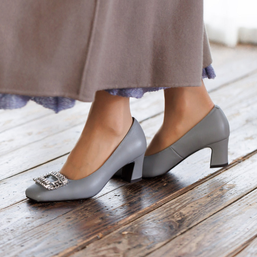 5.5cmの安定感あるミドルヒールと新たに開発した木型を使用して、すらりとした美脚シルエットと安定感のある履き心地を実現。