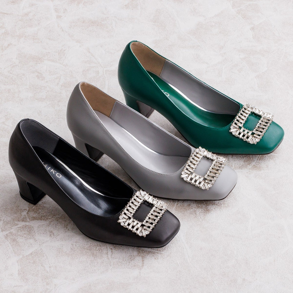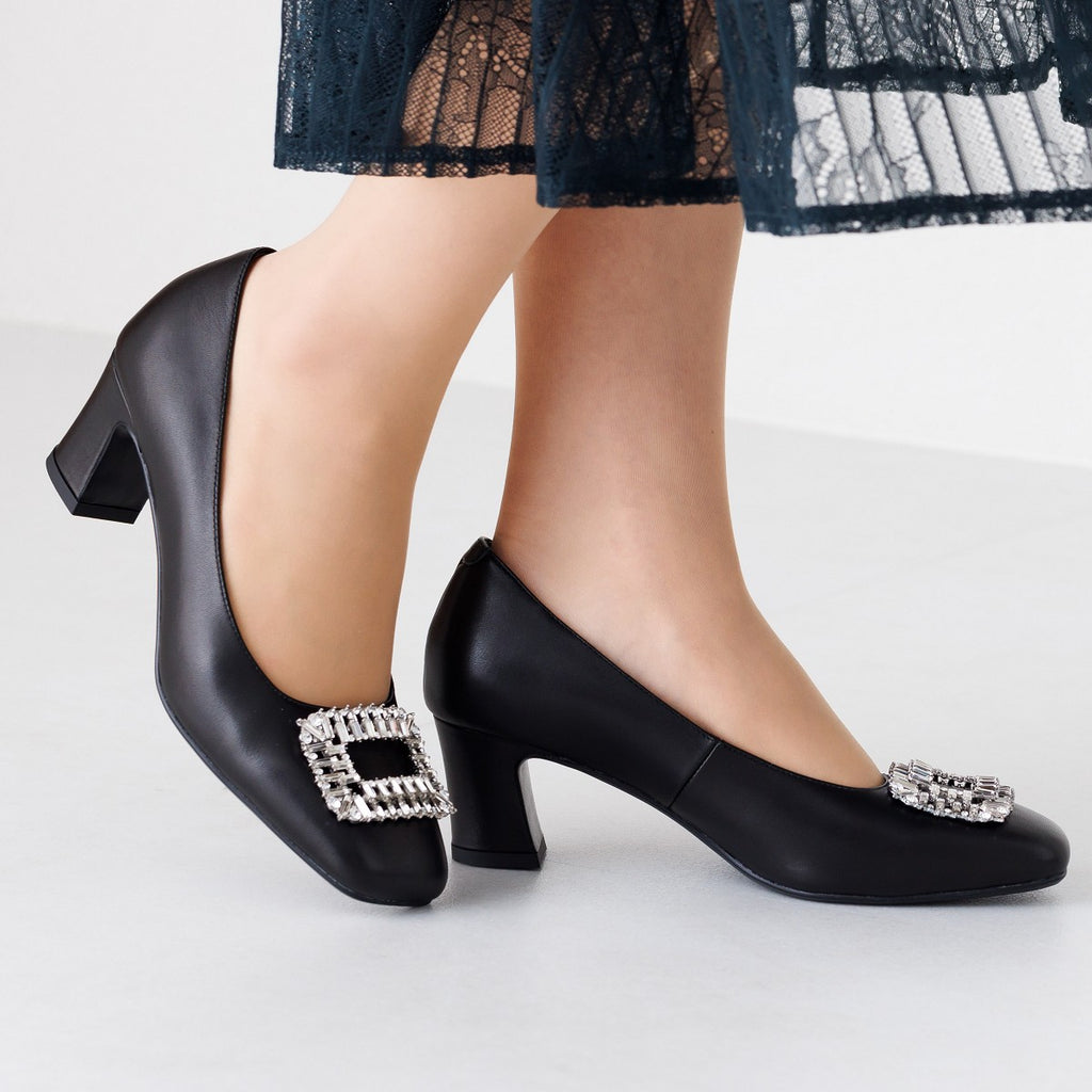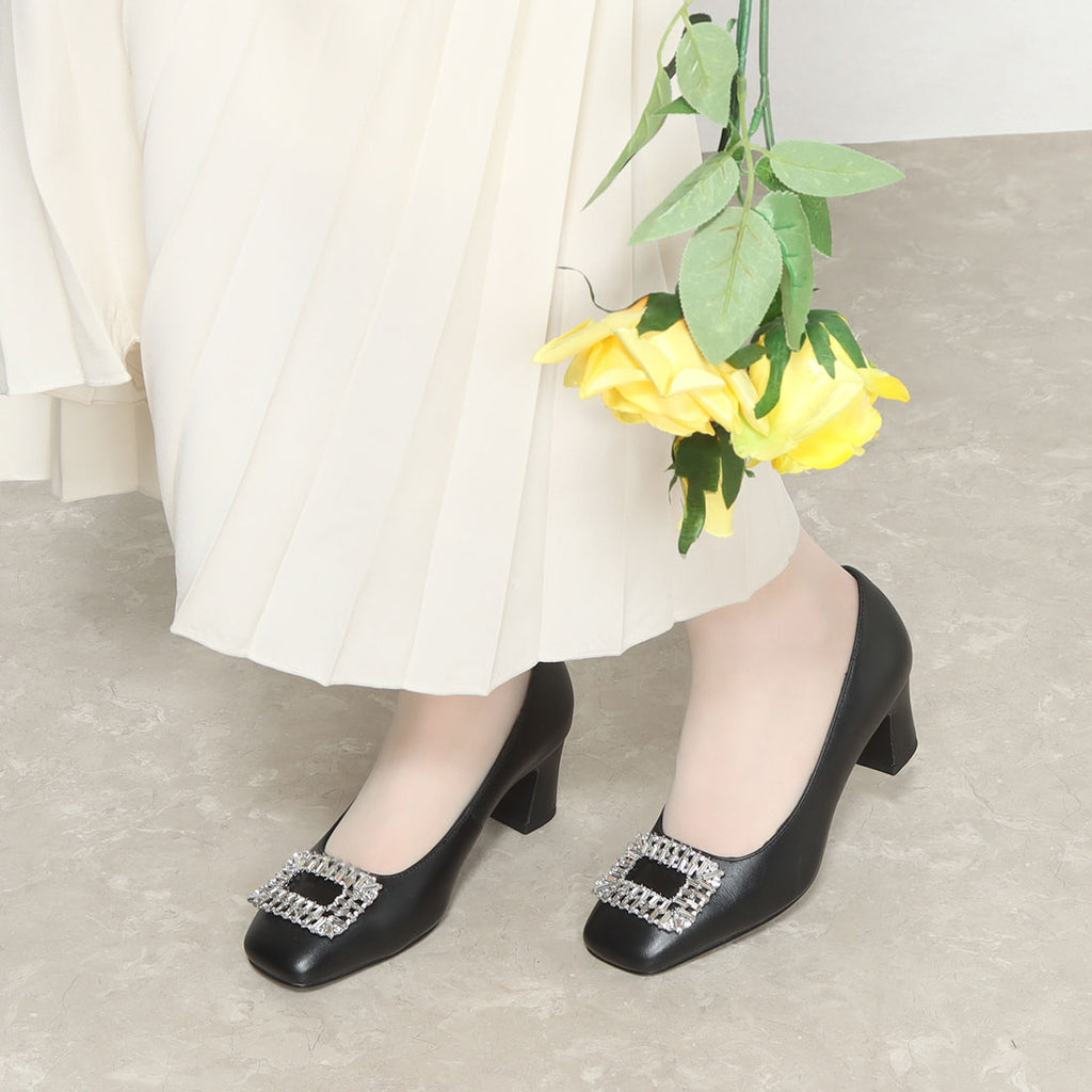 # パンプス レディース 卑弥呼 ビジュー キラキラ ミドルヒール 履きやすい 結婚式 仕事 通勤 かわいい ヒール オケージョン