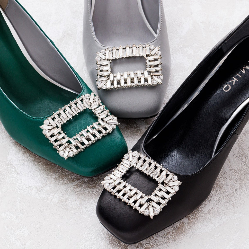 スクエアトゥのフォルムがシックで今年らしく、視線集まる主役級の1足。