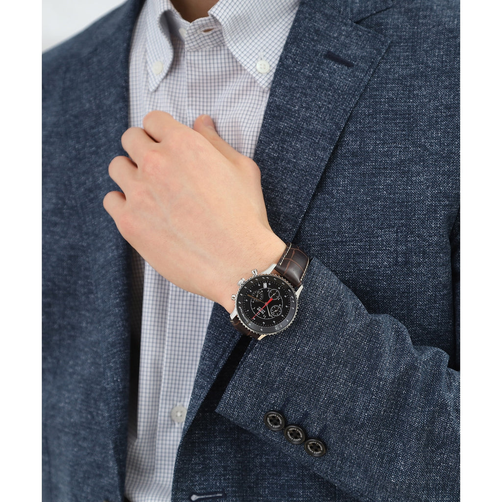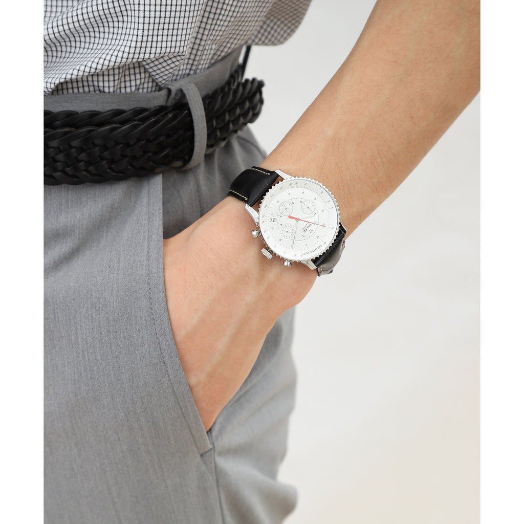 モータースポーツや航空機のコックピットを連想させる文字盤のデザインが秀逸です。