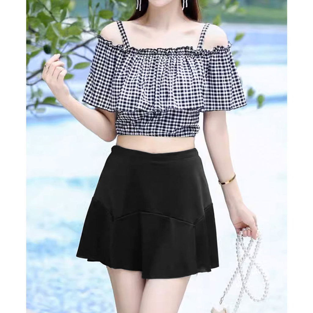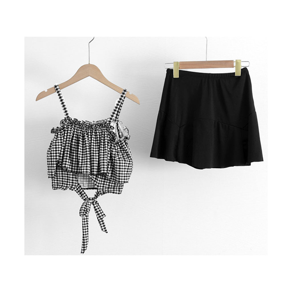 ギンガムチェック セパレート水着 レディース 露出控えめ ハイウエスト パンツ付きミニスカート 2点セット水着大人可愛い