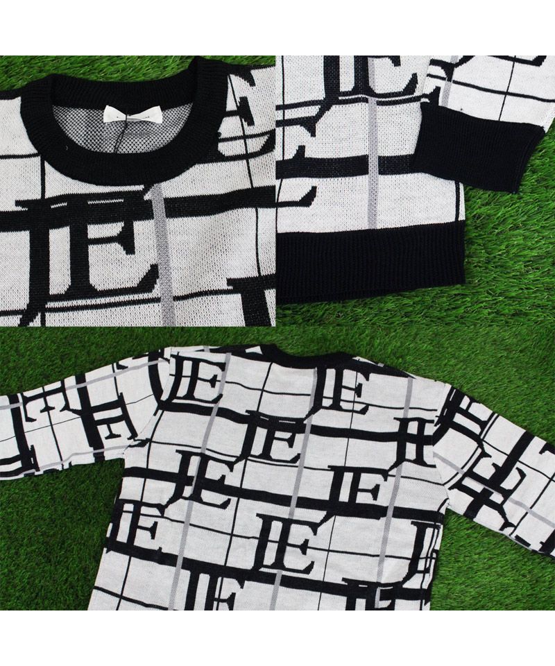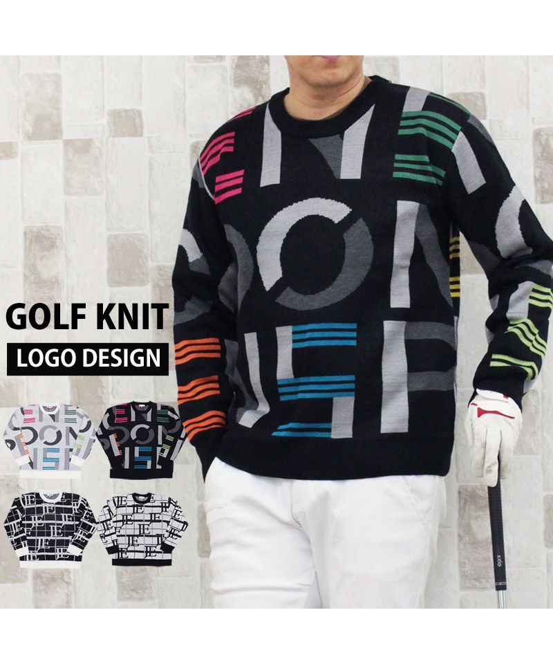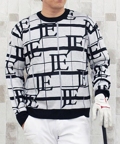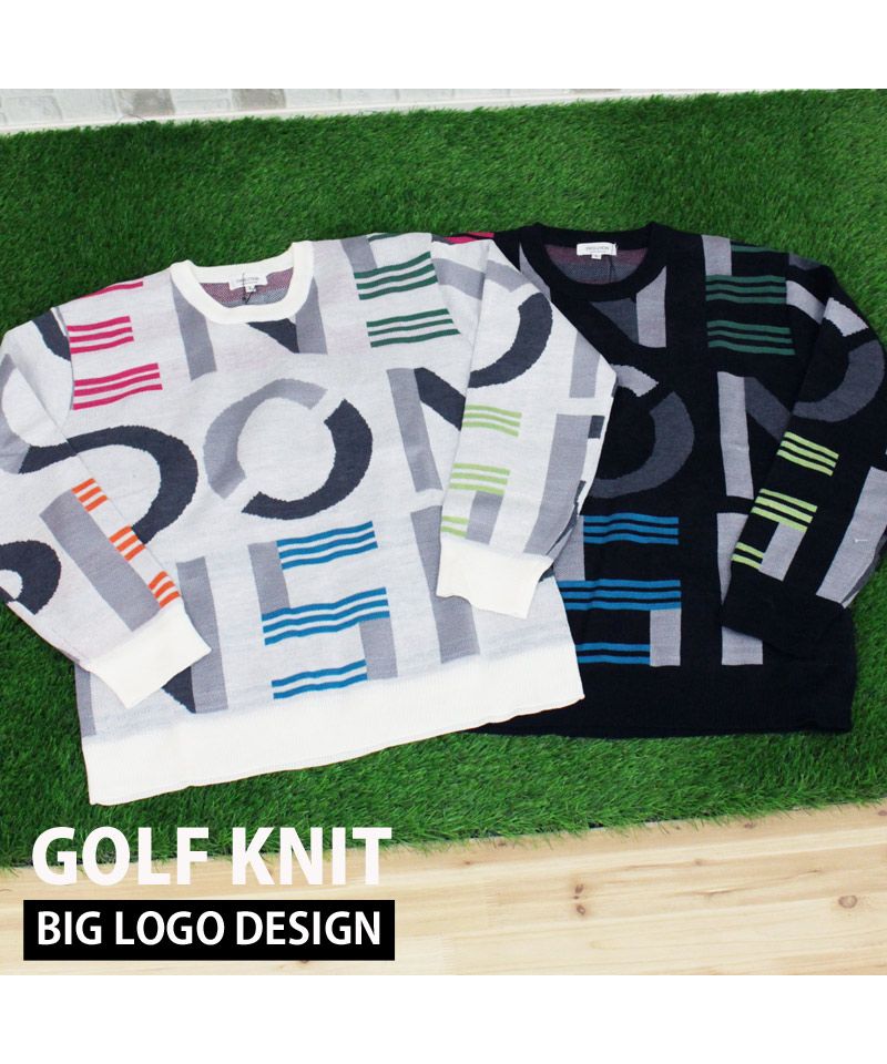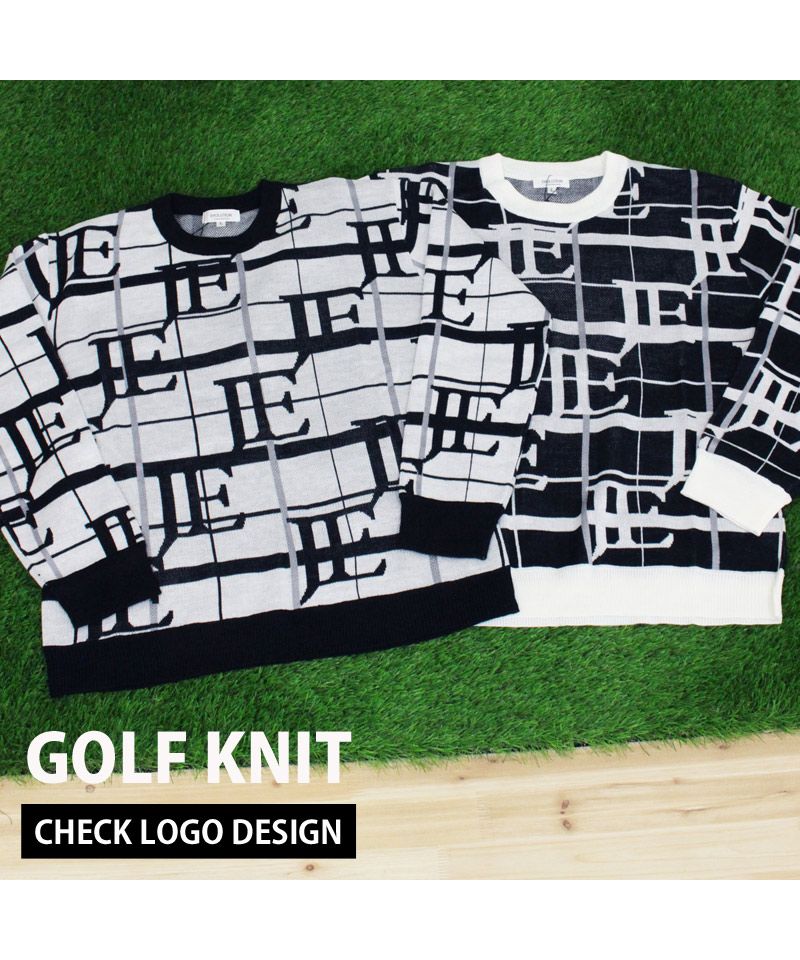 ビッグロゴとチェックロゴを総柄で編みこんだゴルフニットです。
