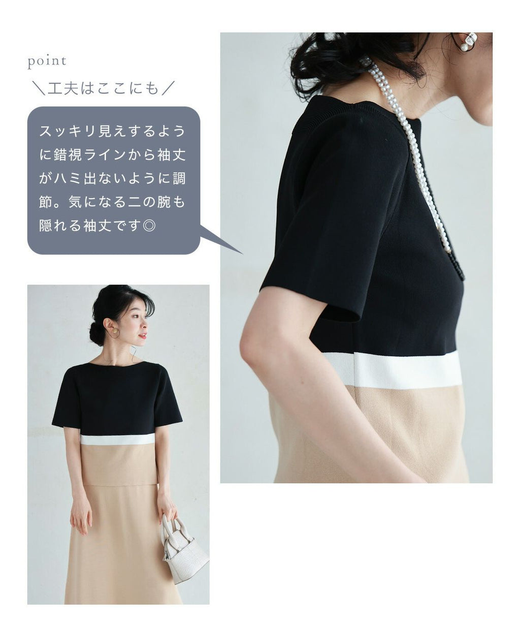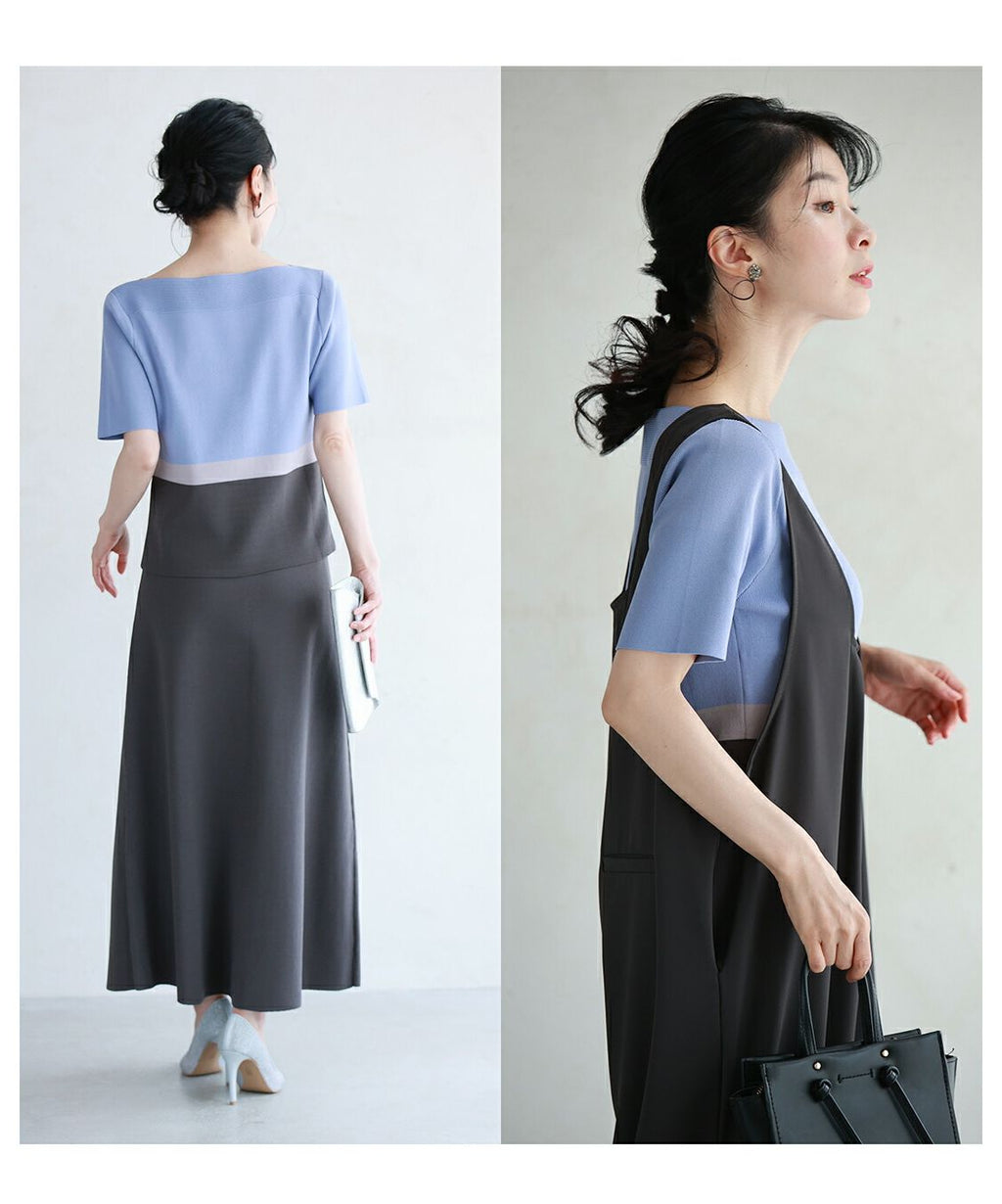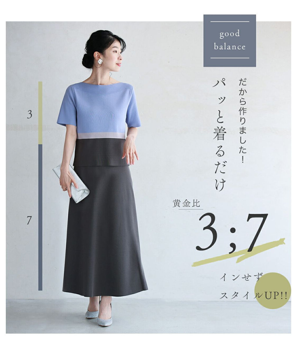 トップスの下部分とスカートが一体化したデザインで、インせずとも美しいバランスを実現します。