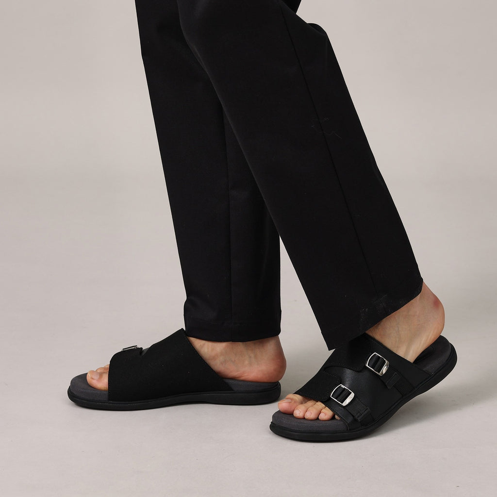 快適さを追求したWバックル仕様のスライドサンダル