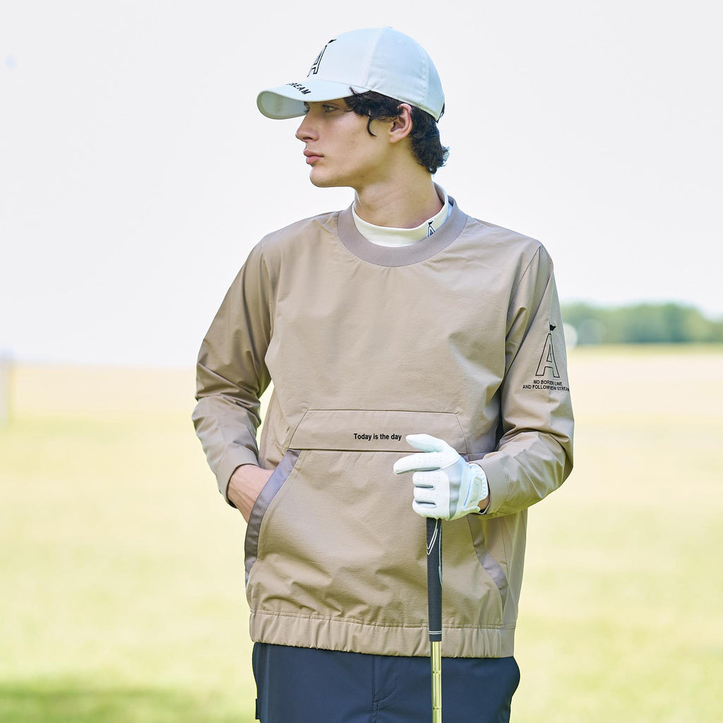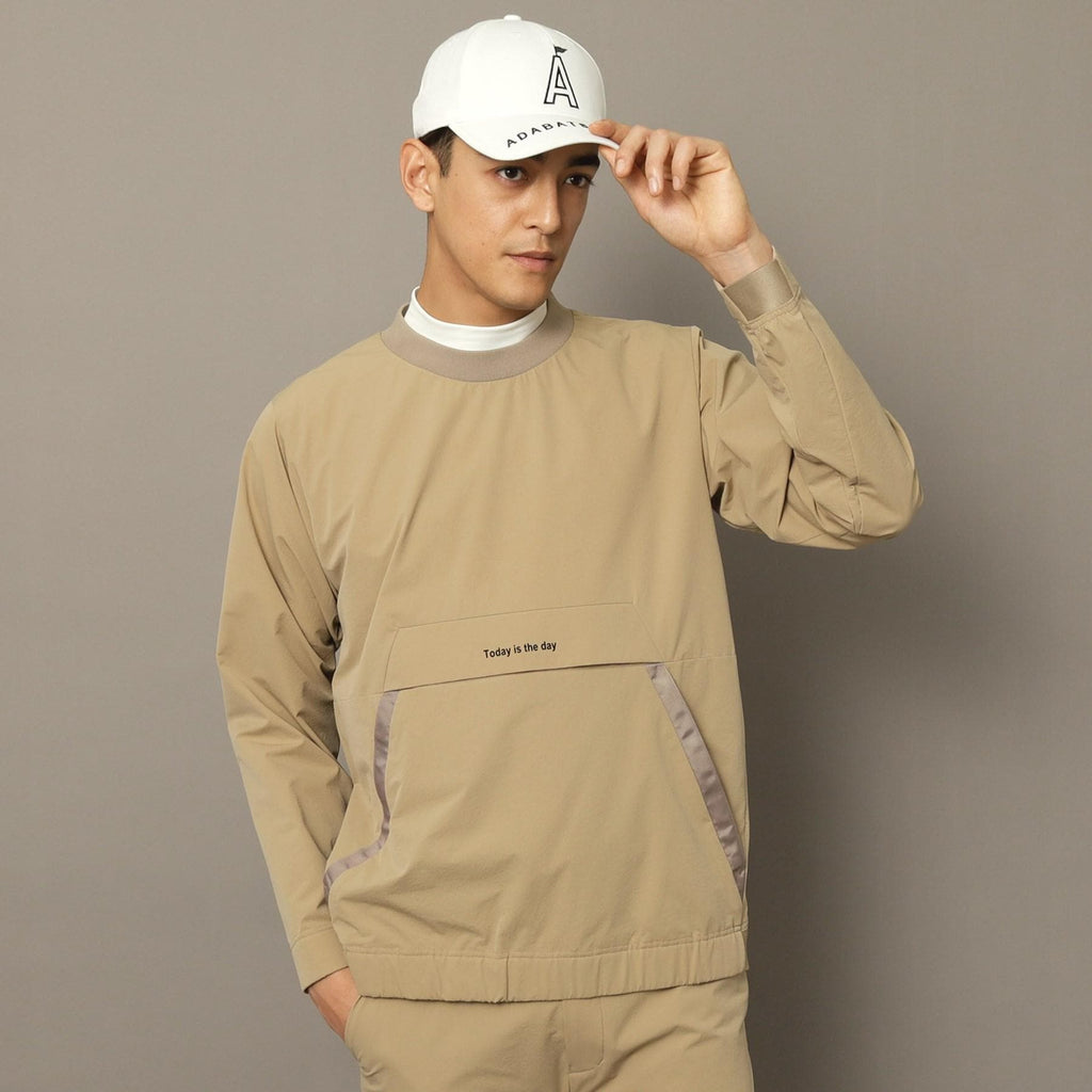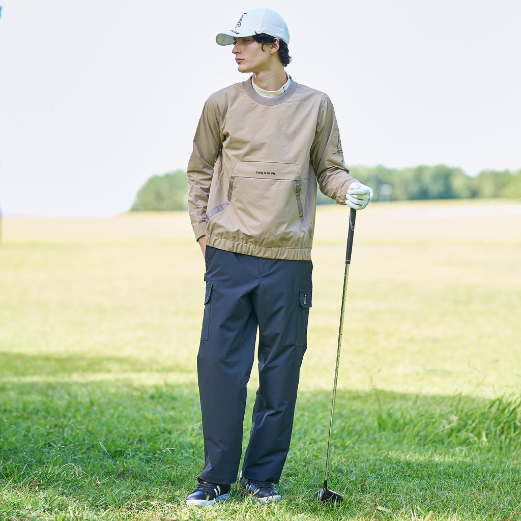 トレンドデザインと高い機能性が光るこのプルオーバーは、ゴルフ場のリラックスウェアとしても、