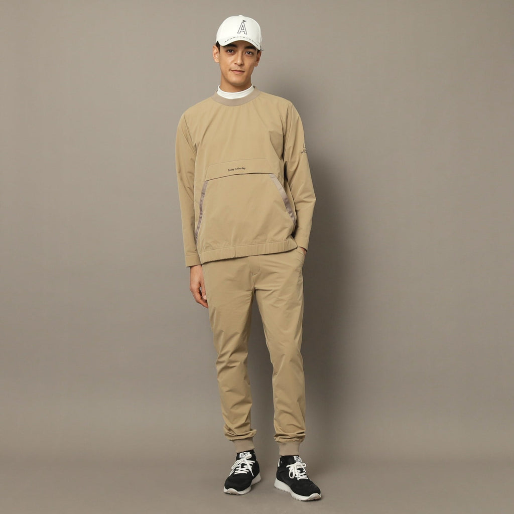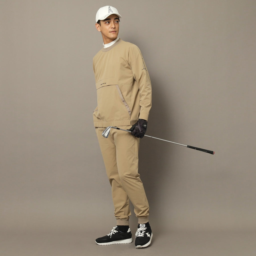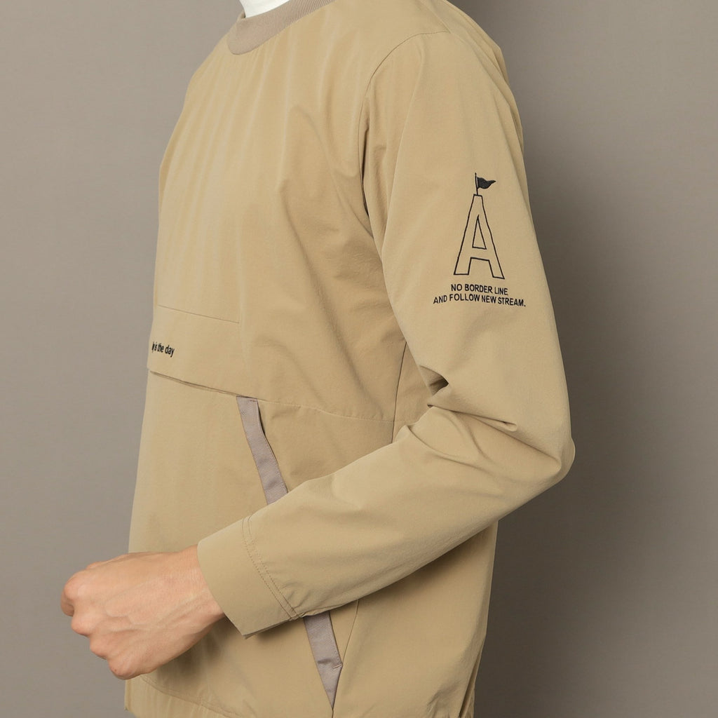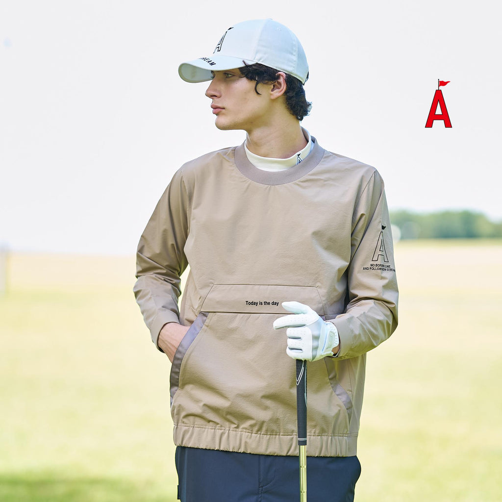 トレンドデザインと高い機能性が光るこのプルオーバーは、ゴルフ場のリラックスウェアとしても、