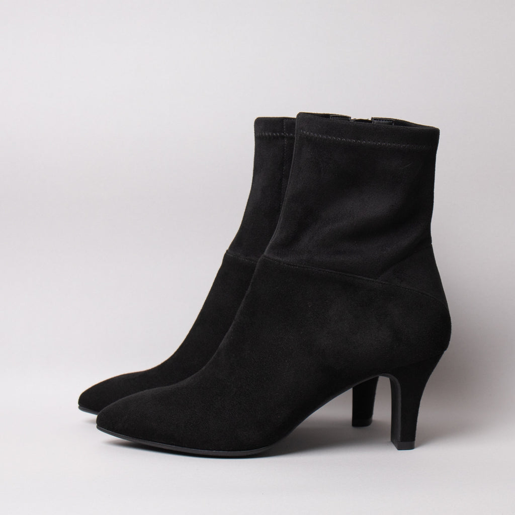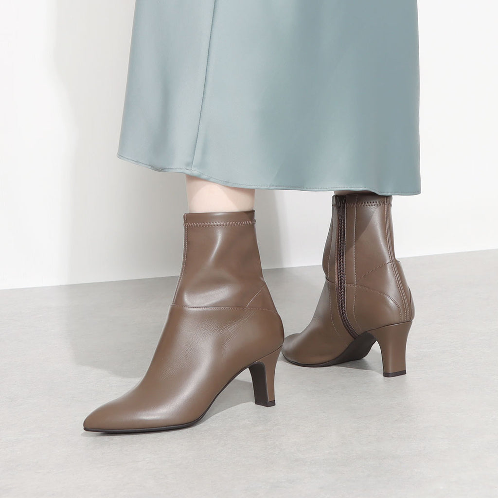 ぴったりフィットするストレッチ素材が足首のラインを綺麗に見せてくれるショートブーツ!