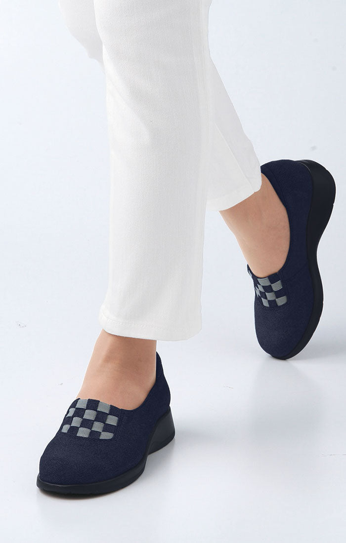 シンプルな中に立体感のある編み柄がアクセントになったデザインシューズです。