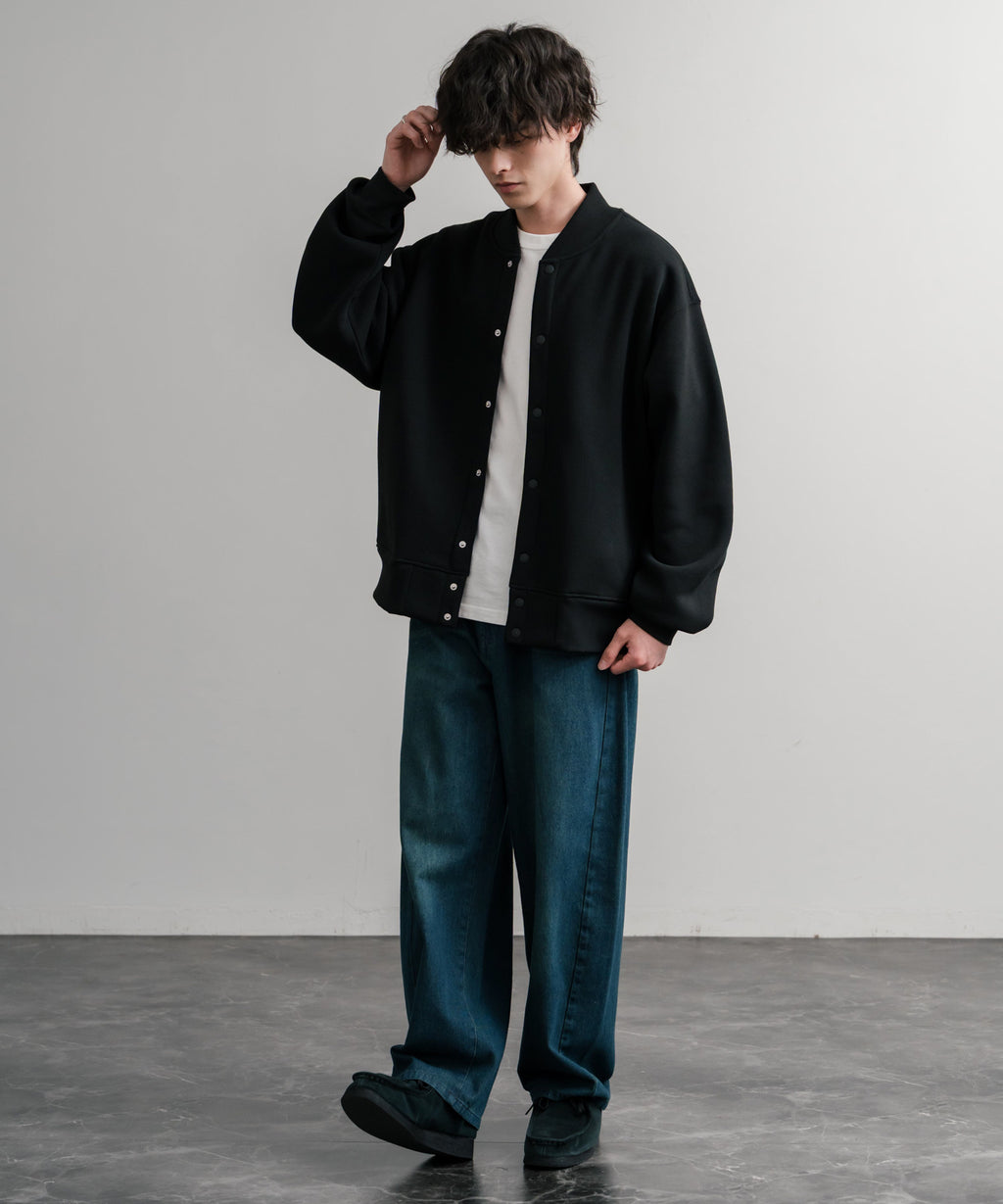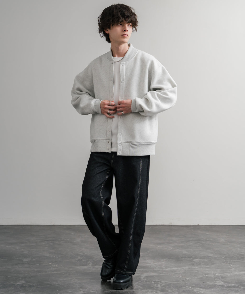 スナップボタン仕様で使い勝手が良く、ブルゾンテイストのデザインにマッチ。