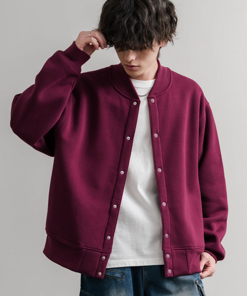 ロッキーモンロー Rocky Monroe カーディガン スナップボタン 裏起毛 メンズ レディース 長袖 ヘビーウェイト 無地 ブルゾン オーバーサイズ ライトアウター カジュアル 保温 14853