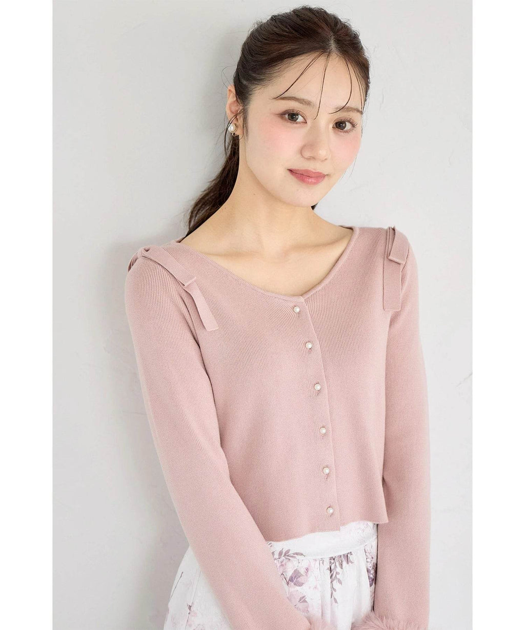 トッコクローゼット tocco closet 2WAYファー付き肩リボンニットカーディガン