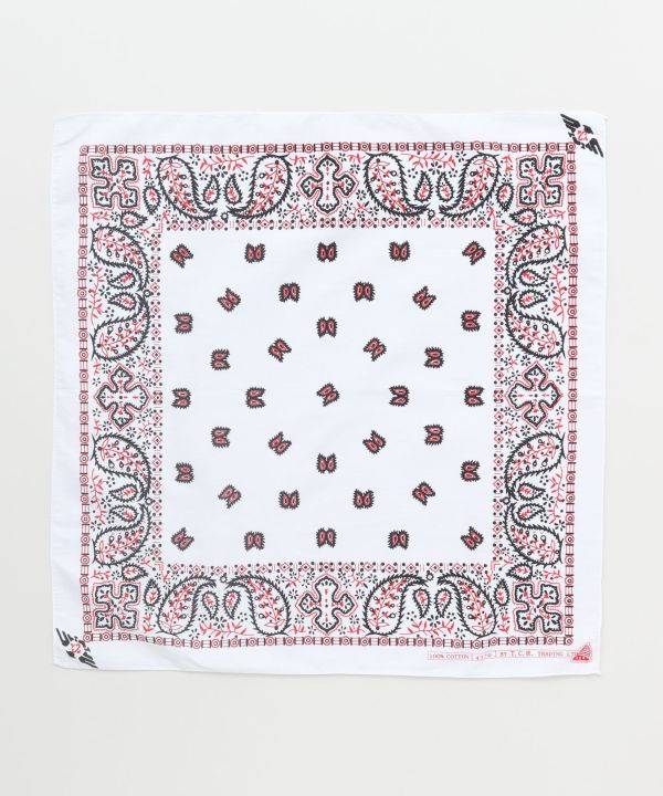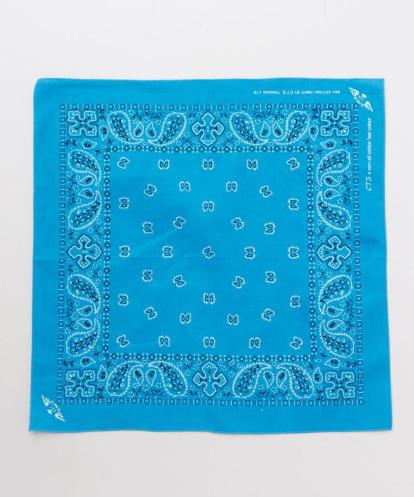 定番のペイズリー柄バンダナ!オールシーズン使えるコーデのマストアイテム。手首や首元・頭に巻いてスタイリングのアクセントに◎ランチクロスやインテリアにも使える便利なマルチファブリックです★