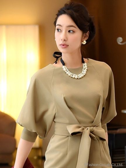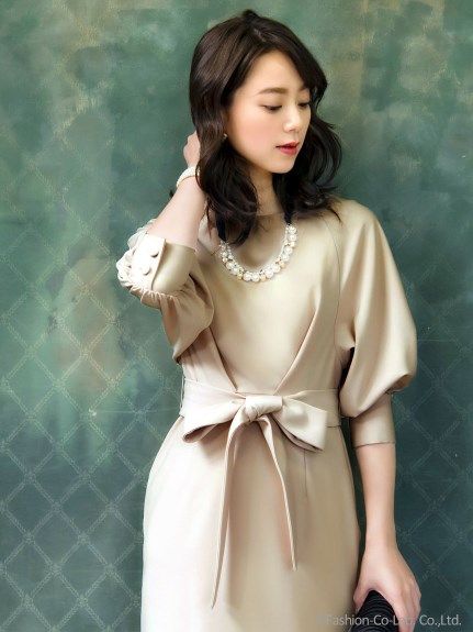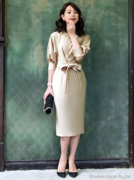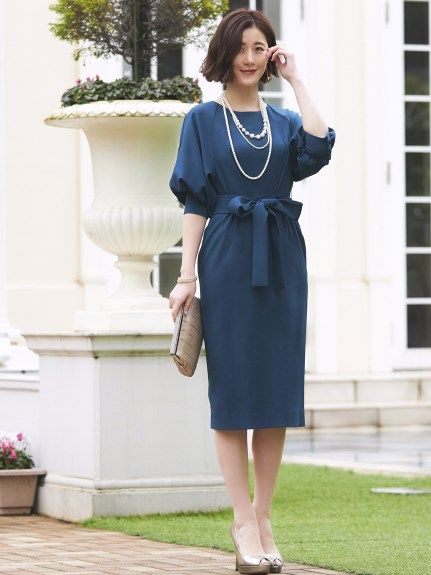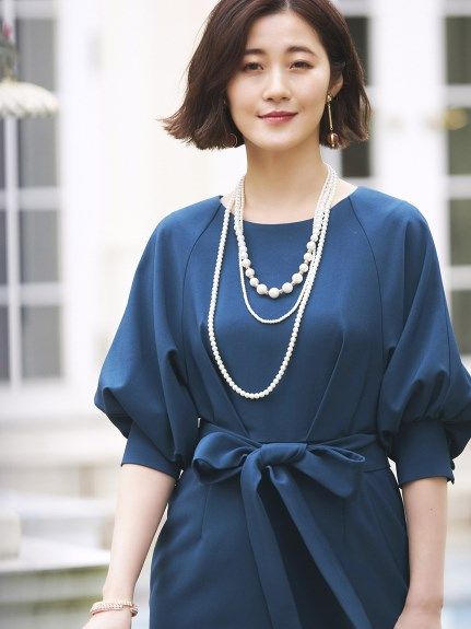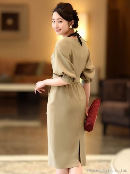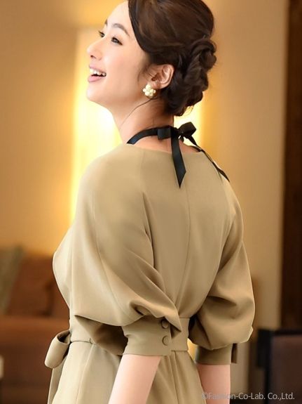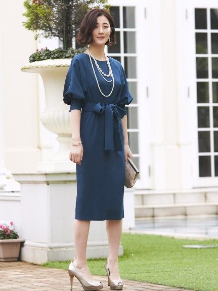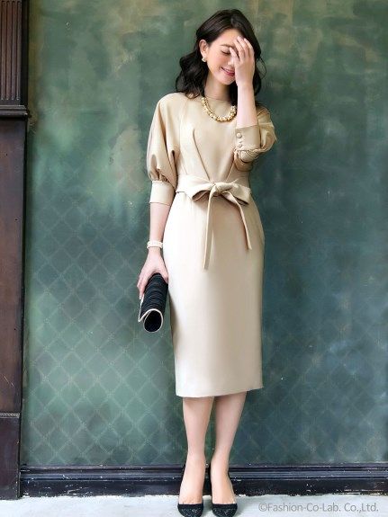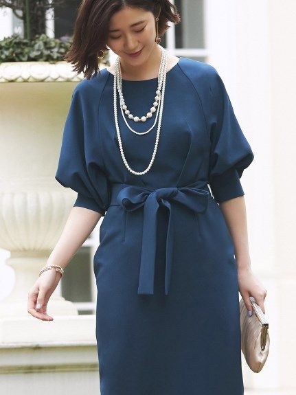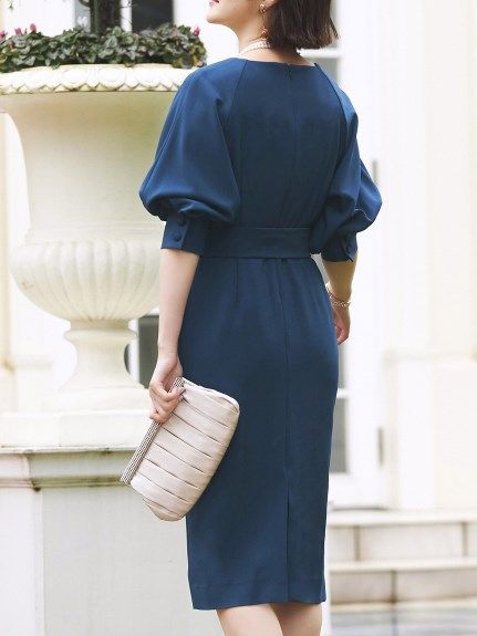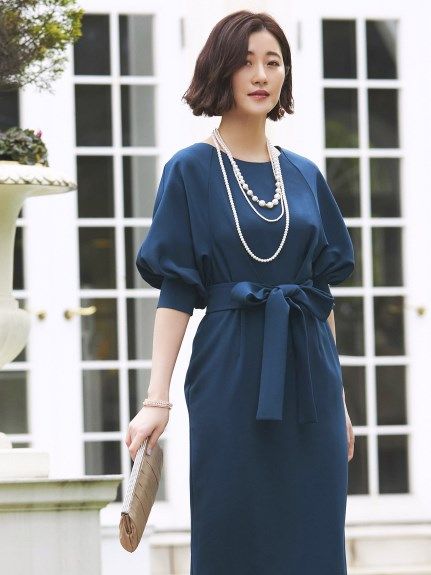 ふっくらとしたバルーンスリーブが、愛らしいワンピース。程よく存在感を放ち、周囲の視線を自然と誘います。タイトめのボトムシルエットで、すっきりとした印象もプラス。