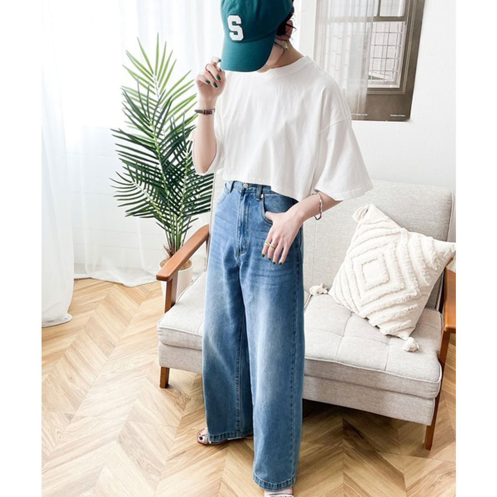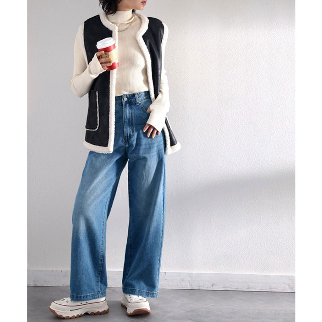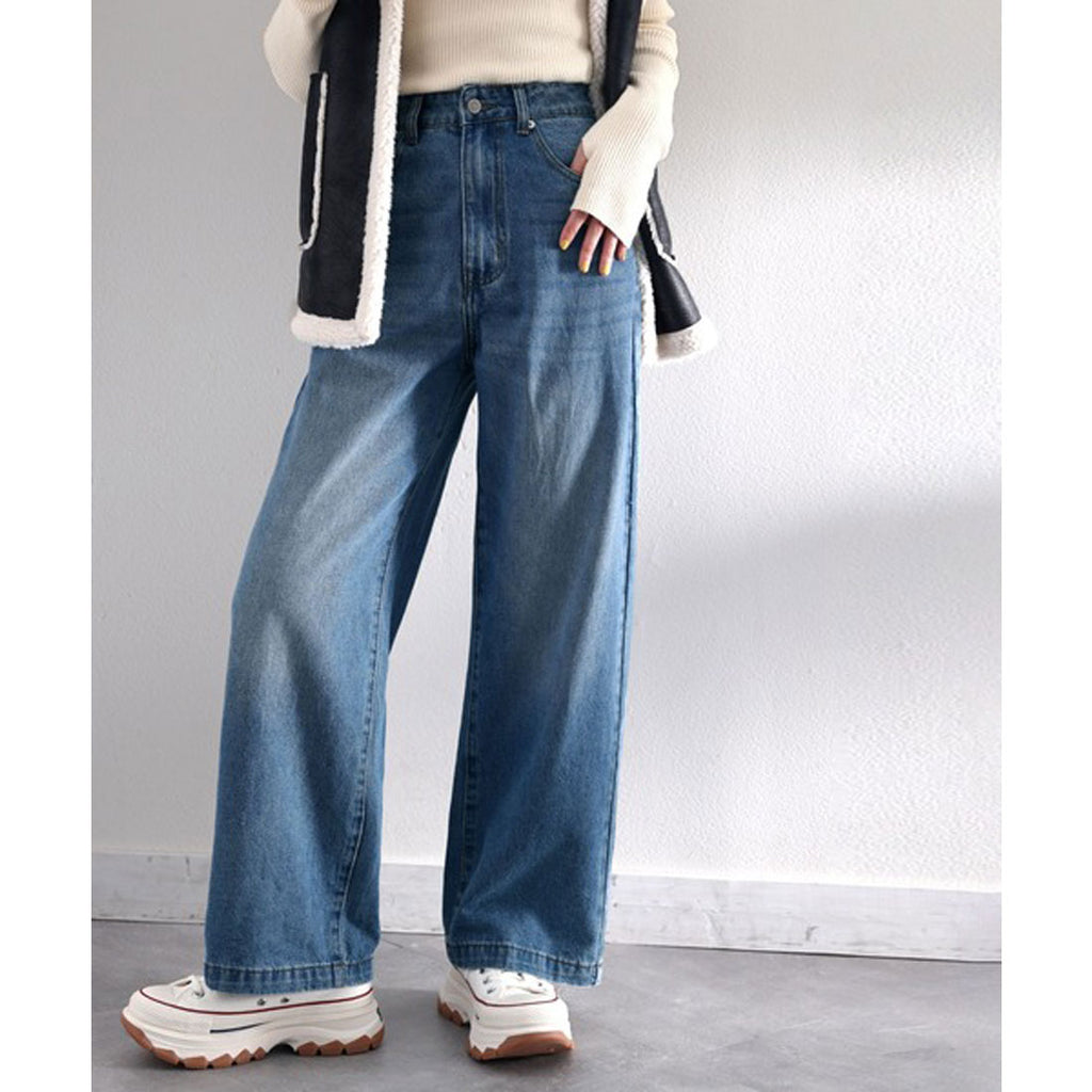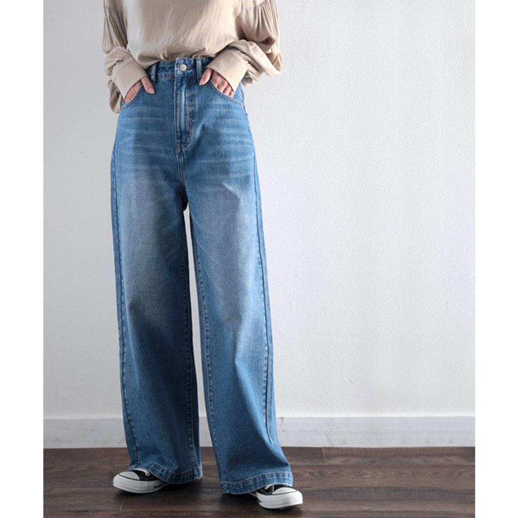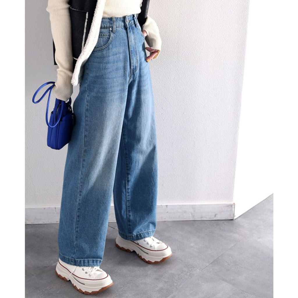 クラシカルエルフ Classical Elf ハイウエスト無地ワイドデニムパンツ