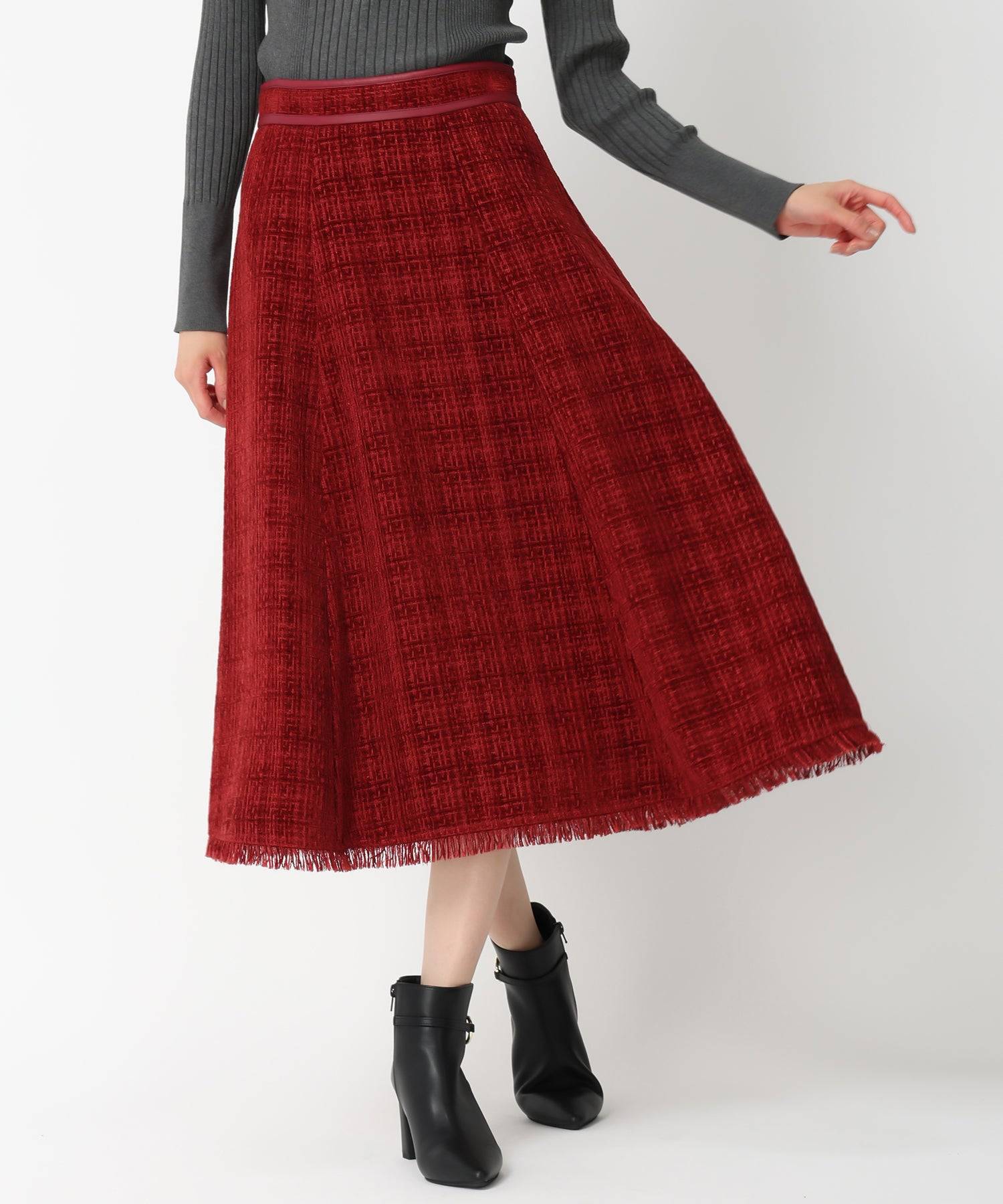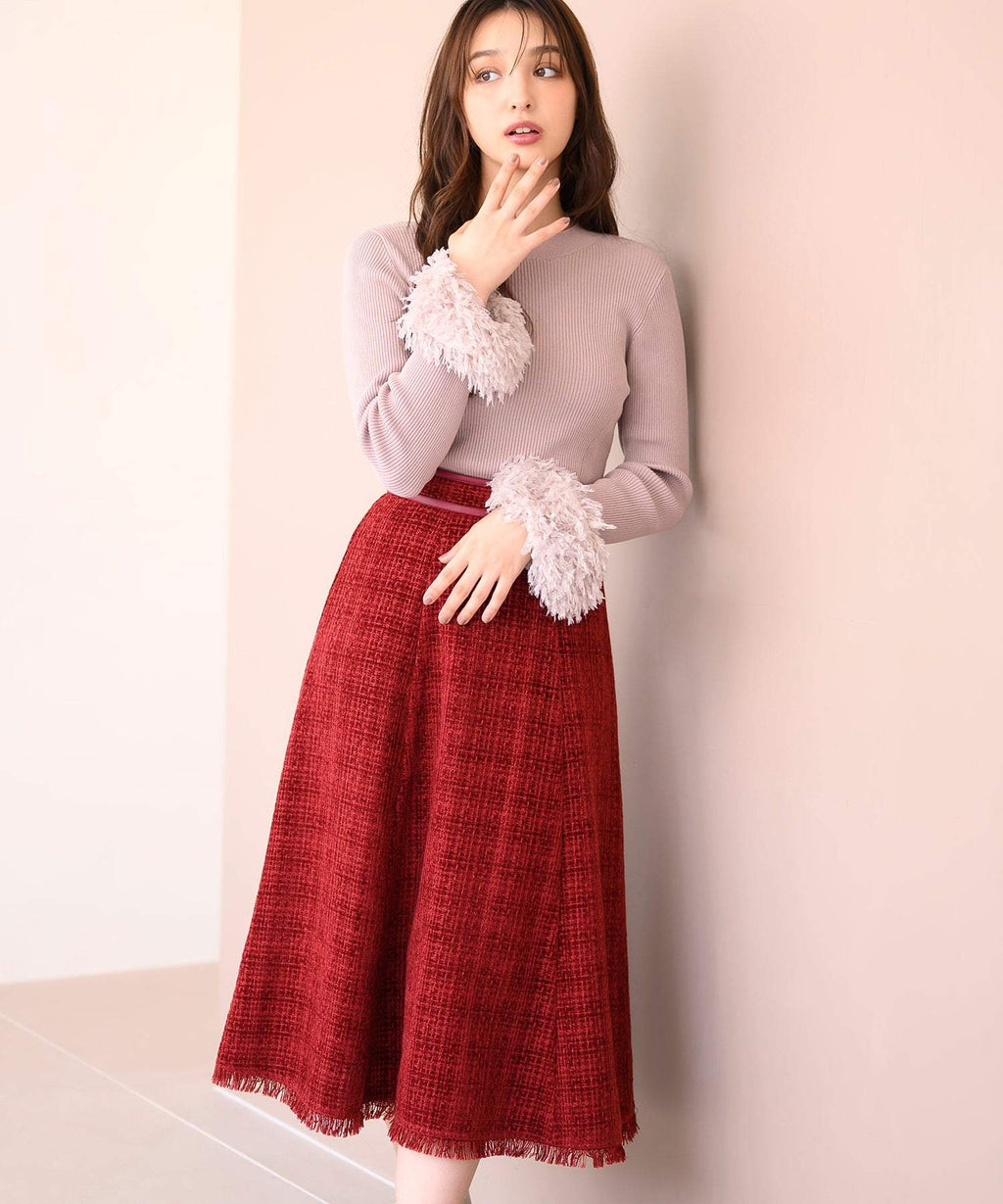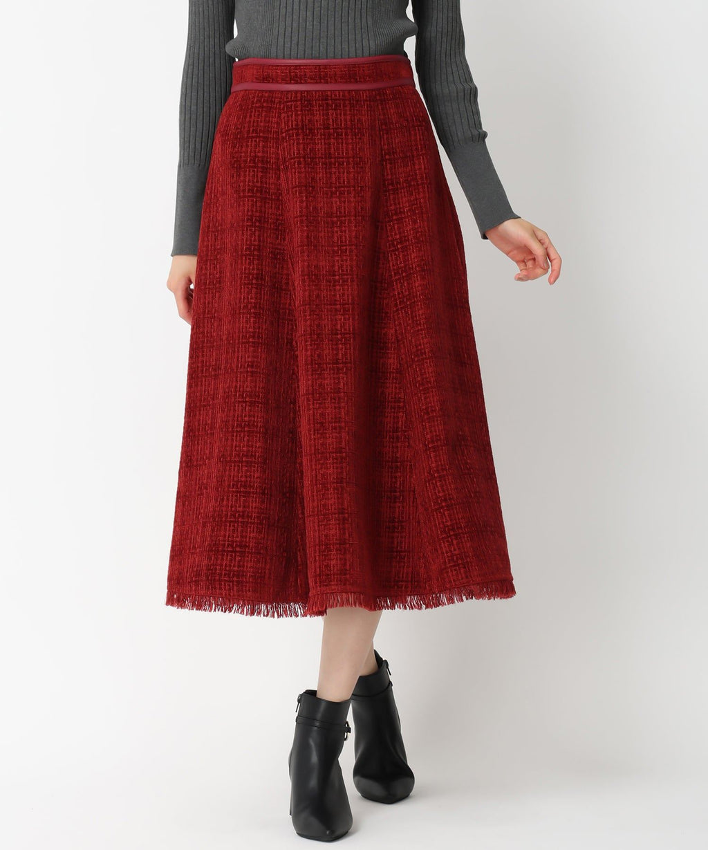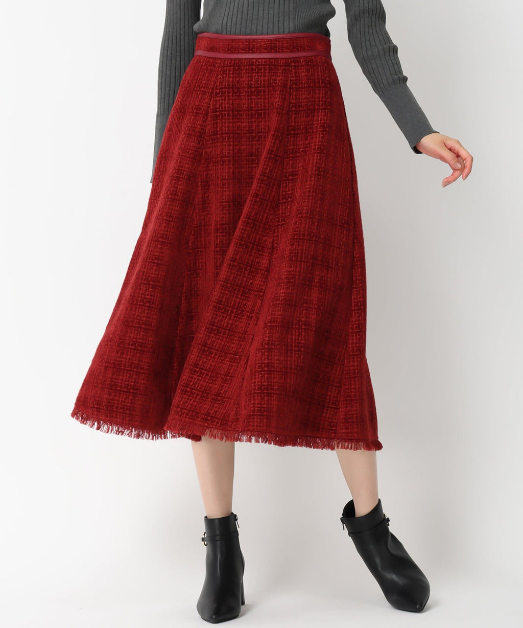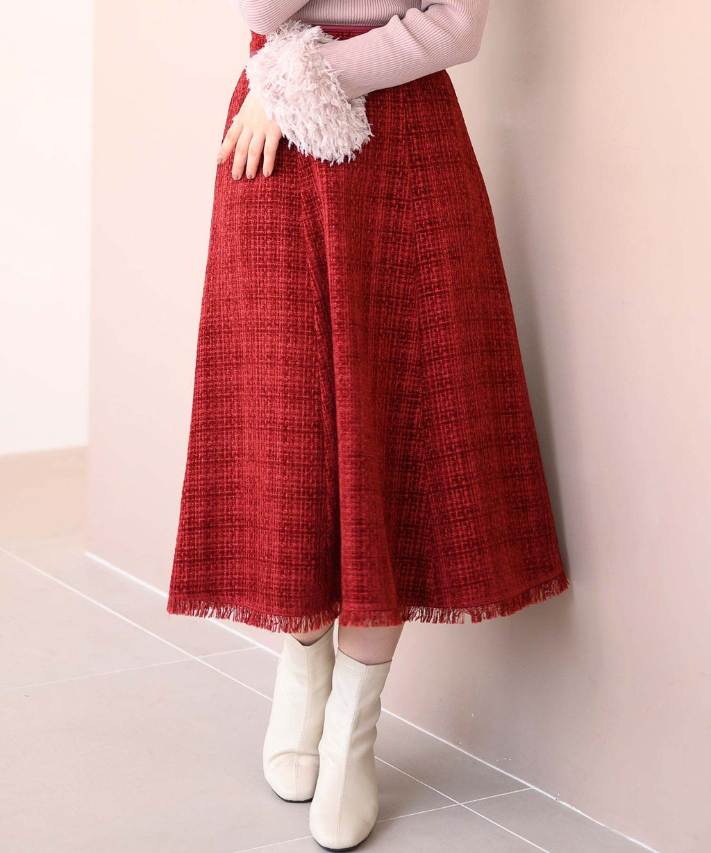 重厚感のあるツイード調の生地で仕立てられたスカート。ふんわりと広がるフレアシルエットで、フェミニンな印象を与えます。ゴム仕様のウエストが程よいフィット感をプラス。シンプルなトップスと合わせたバランスの良い着こなしがおすすめです。■fabric透け感[無し]裏地[すべて有り]伸縮性[無し]生地の厚さ[普通]ウエストゴム[有り]ファスナー[有り]ポケット[無し]