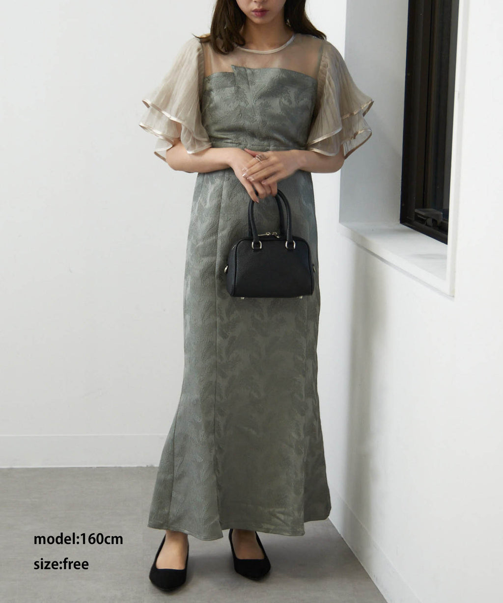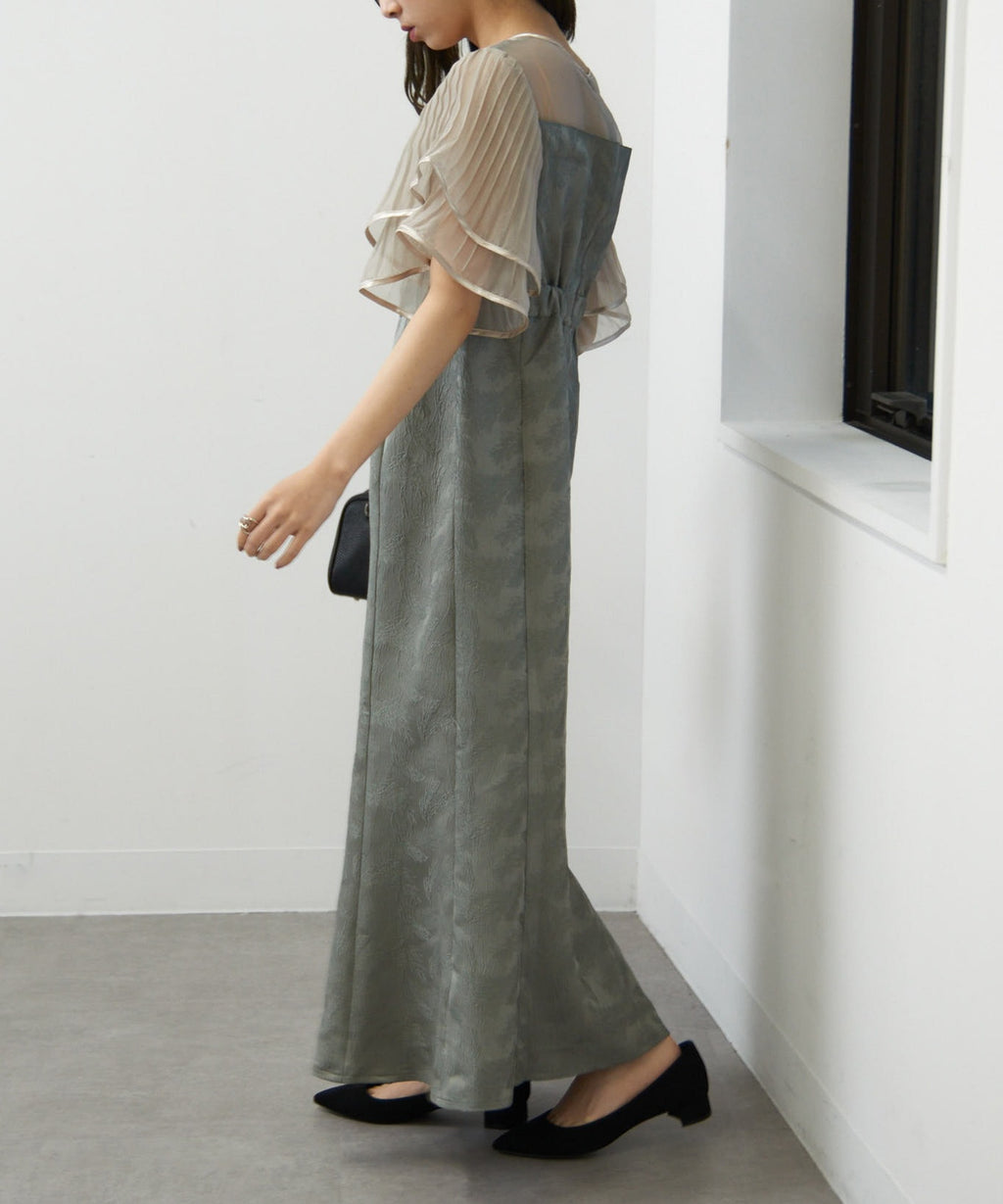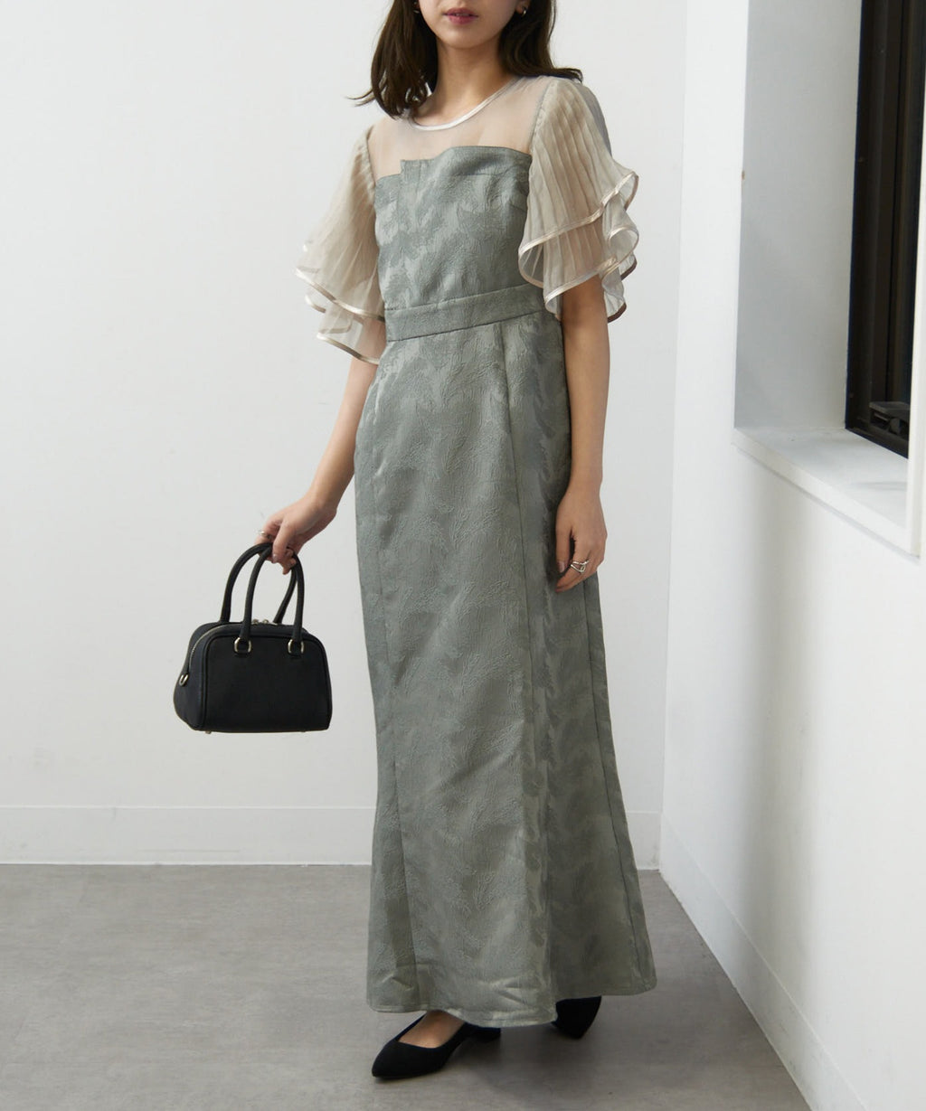 プリーツフレアースリーブが生み出す柔らかなシルエットが、女性らしさを引き立てながらエレガントな印象を与えます。