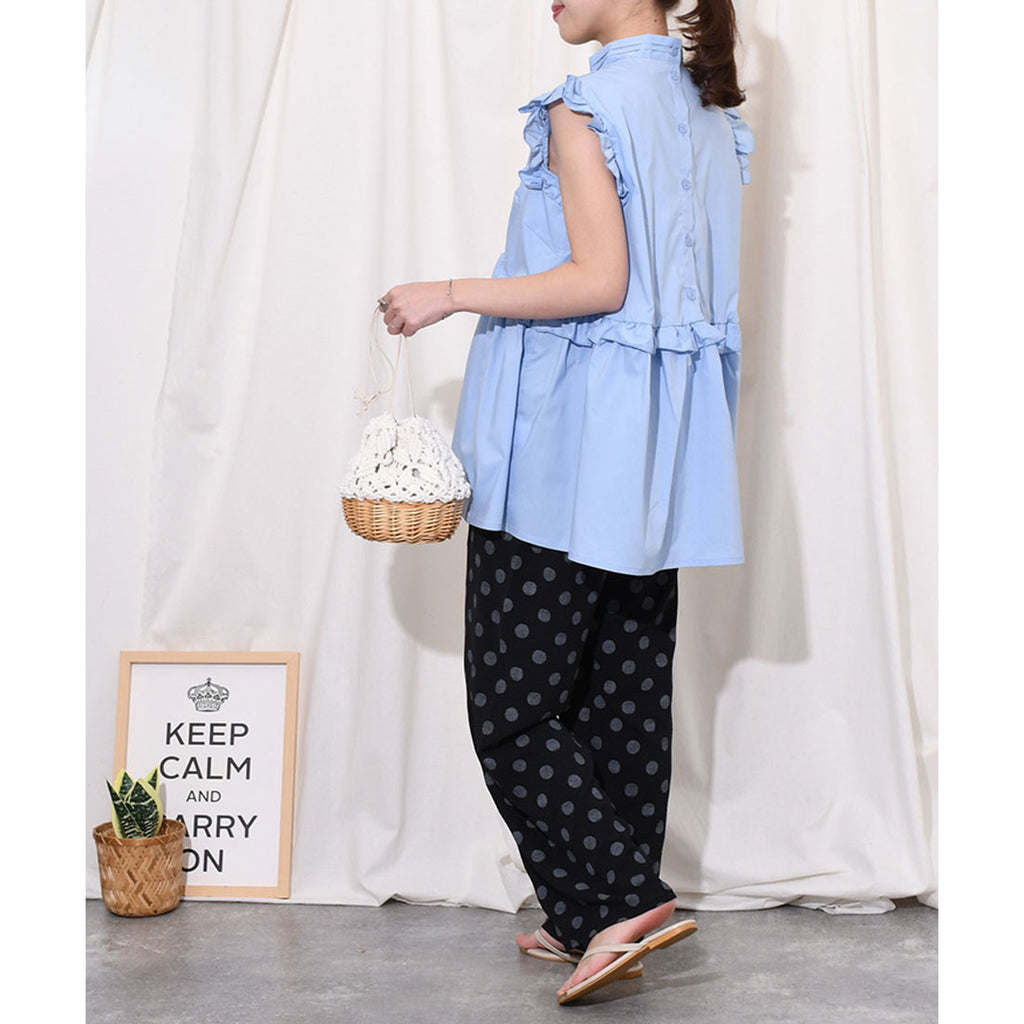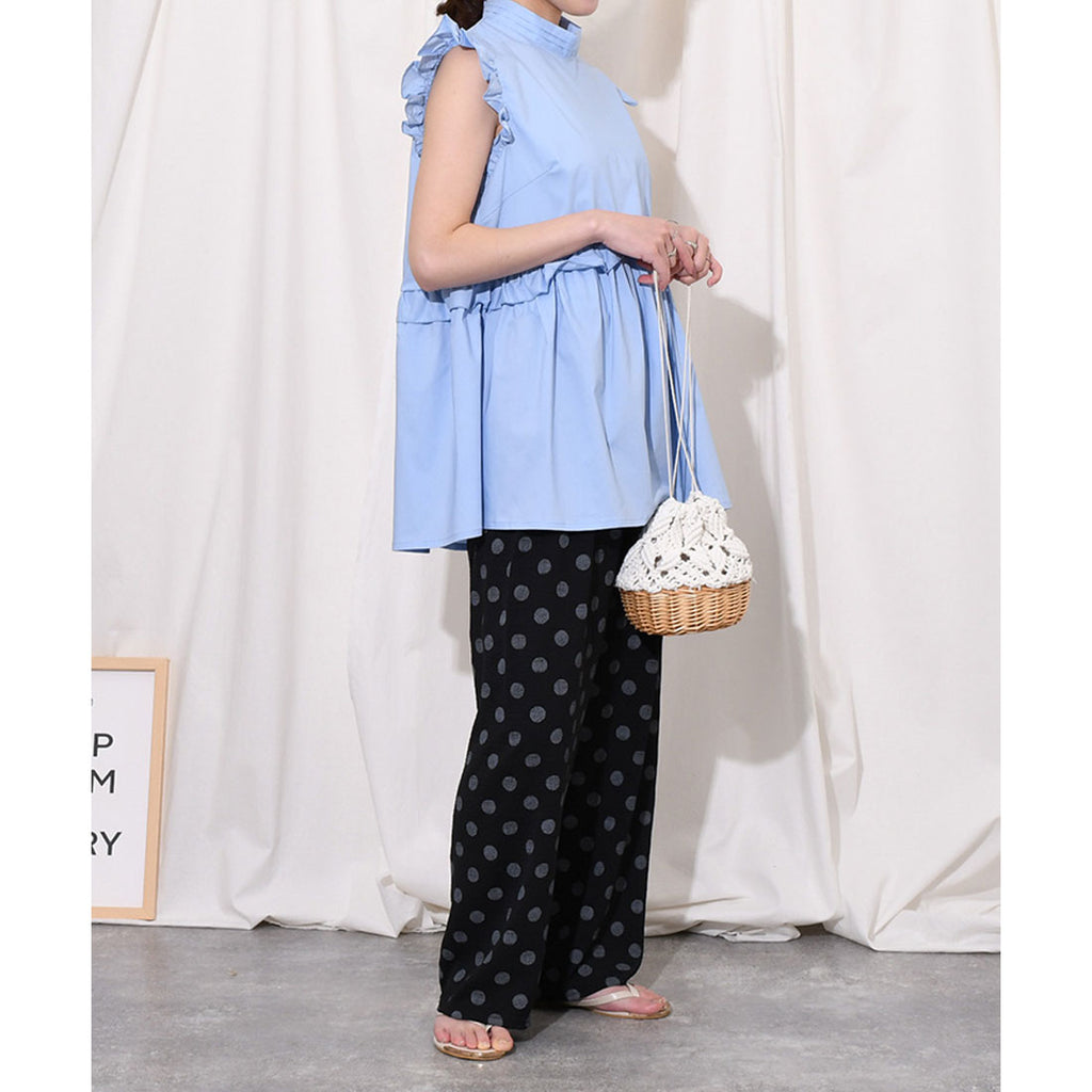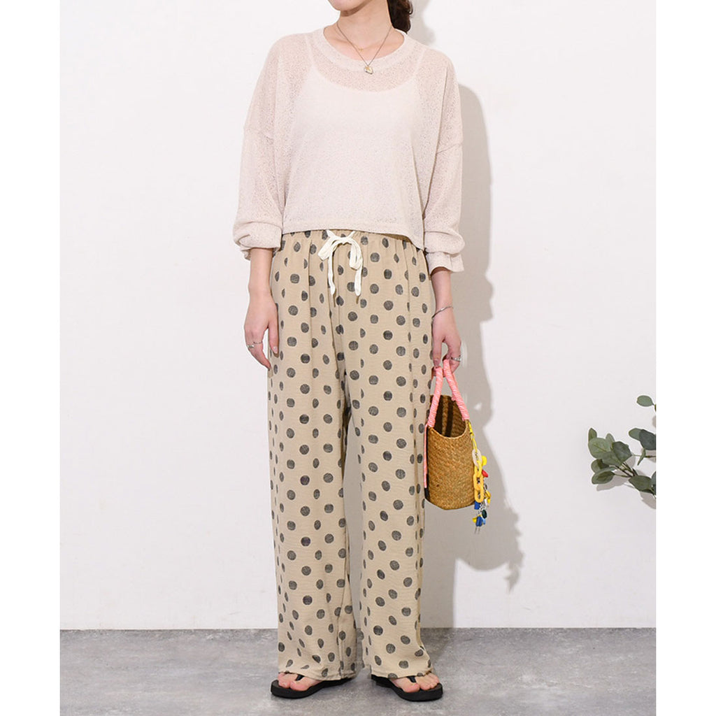 カケアミのドット柄が印象的なイージーワイドパンツ