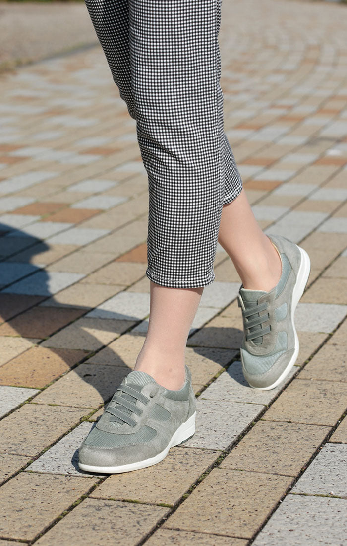 5Eのゆったり感とほどけない【甲ゴム】が魅力。