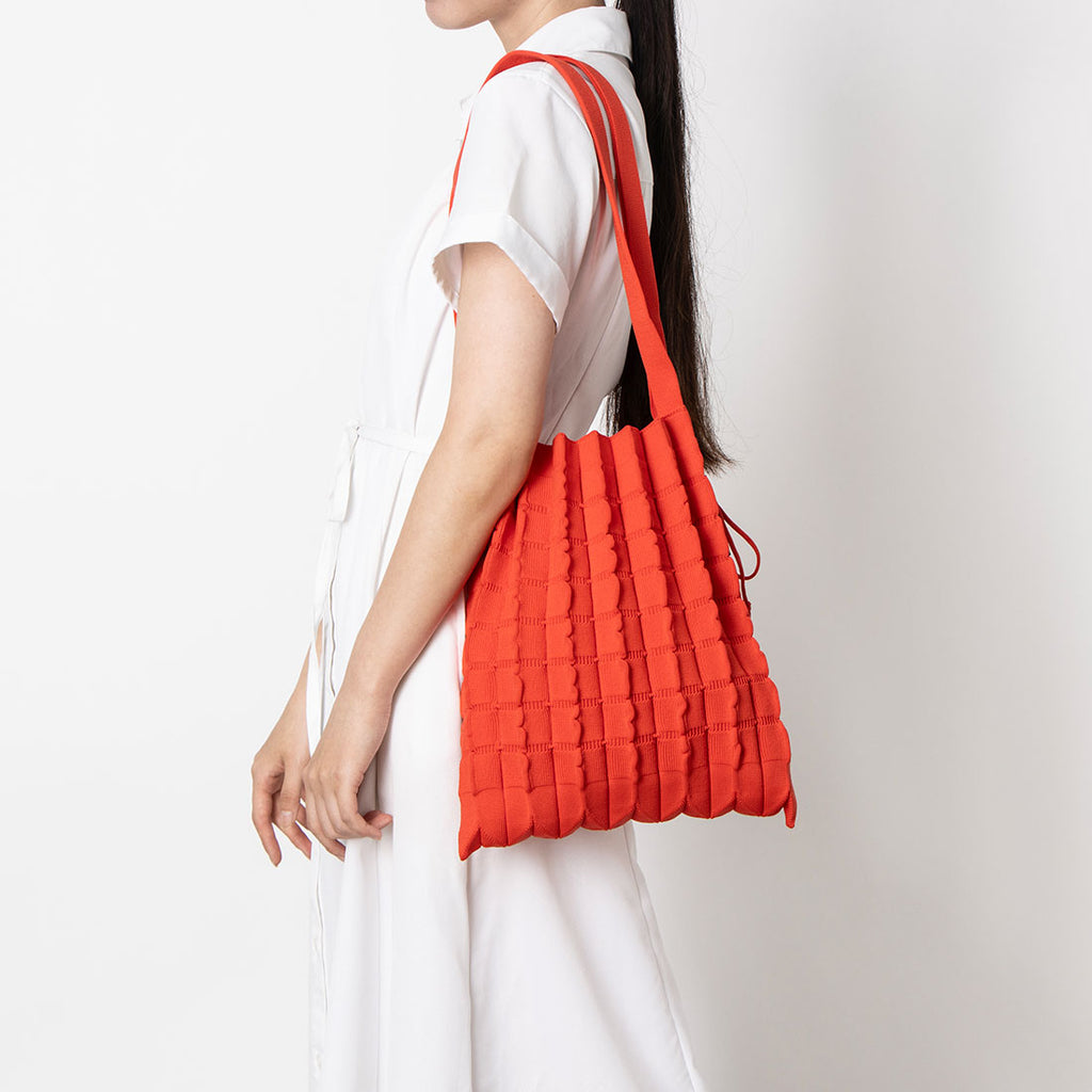 フィオーリは、ニットの伸びを防ぎ、しっかりとしたテクスチャーを備えており、荷物を収納しても形をしっかりキープできるのが特徴です。