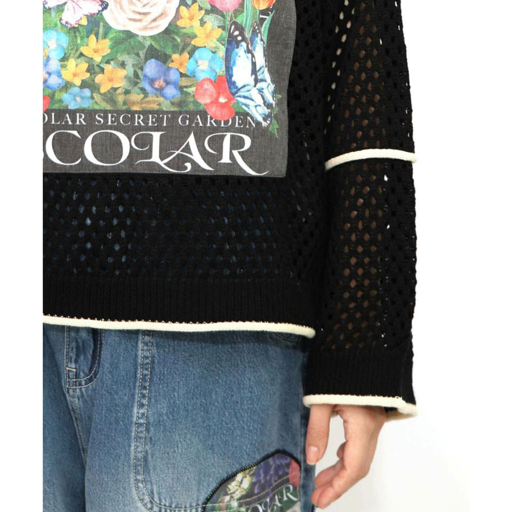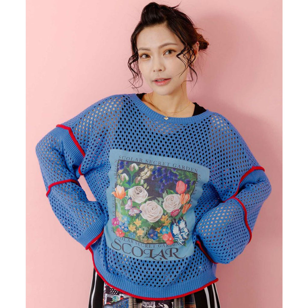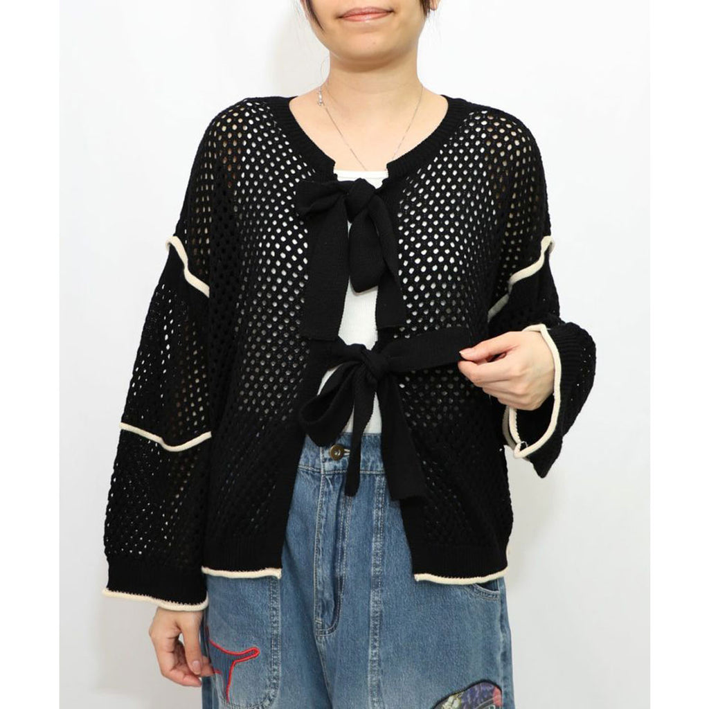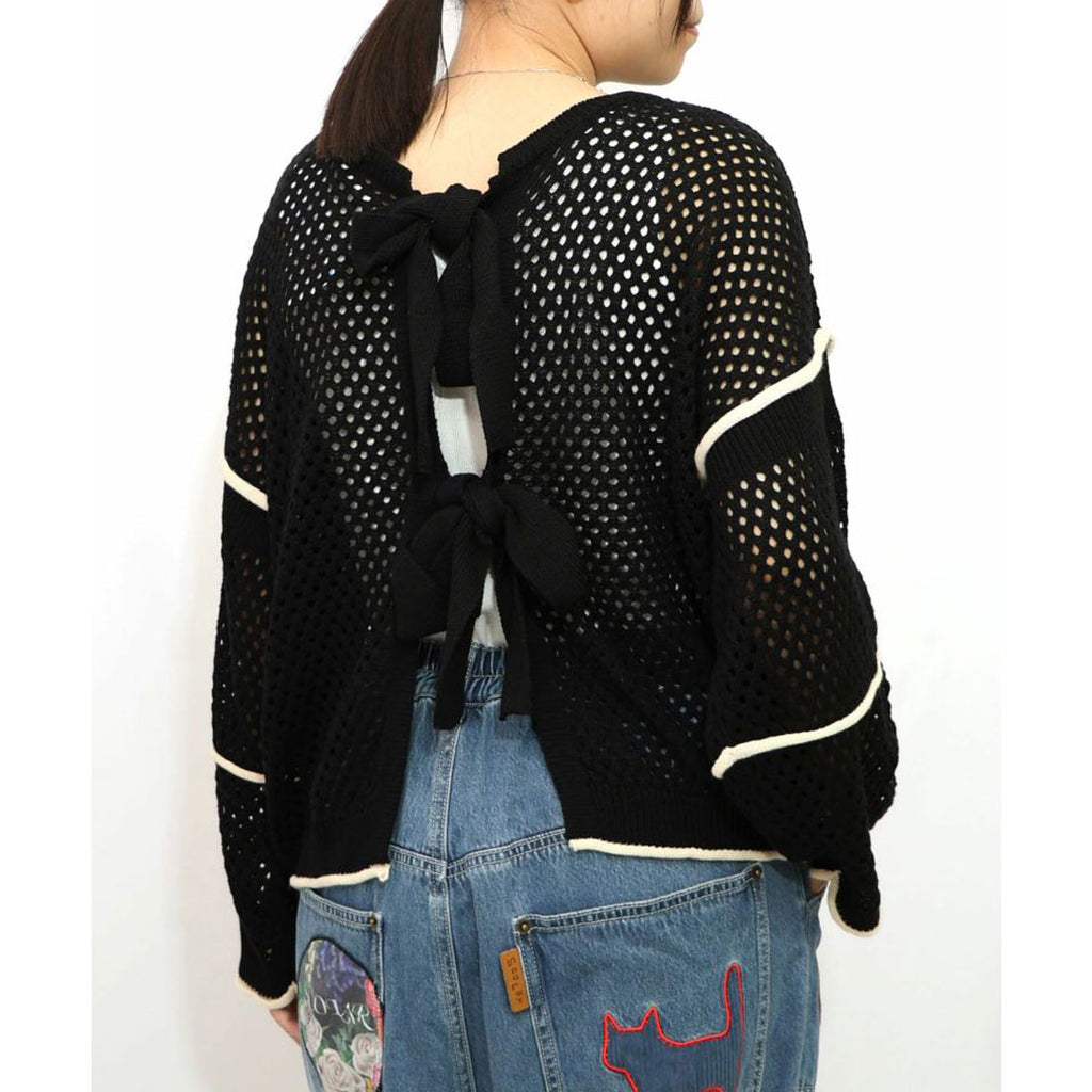 前後どちらを前にしても着られる、2WAY仕様のメッシュ編みのカーディガン。