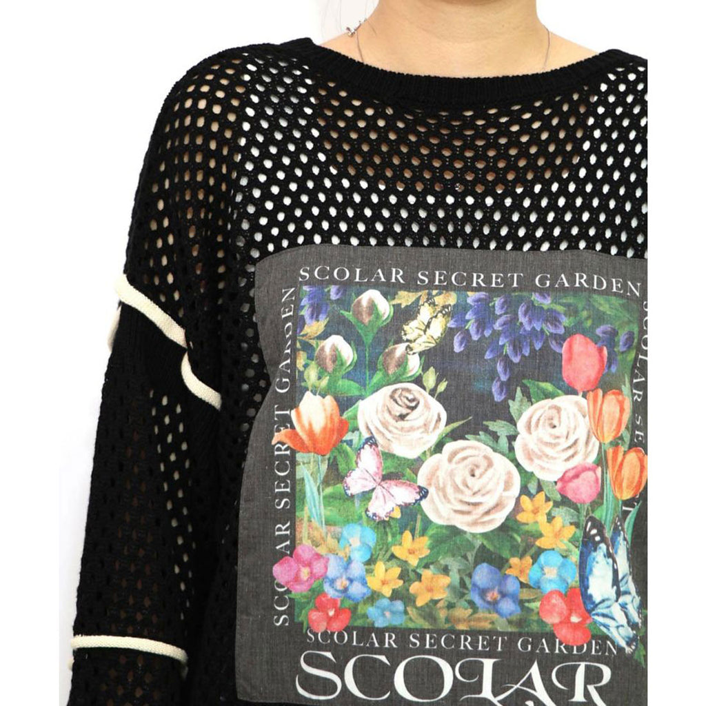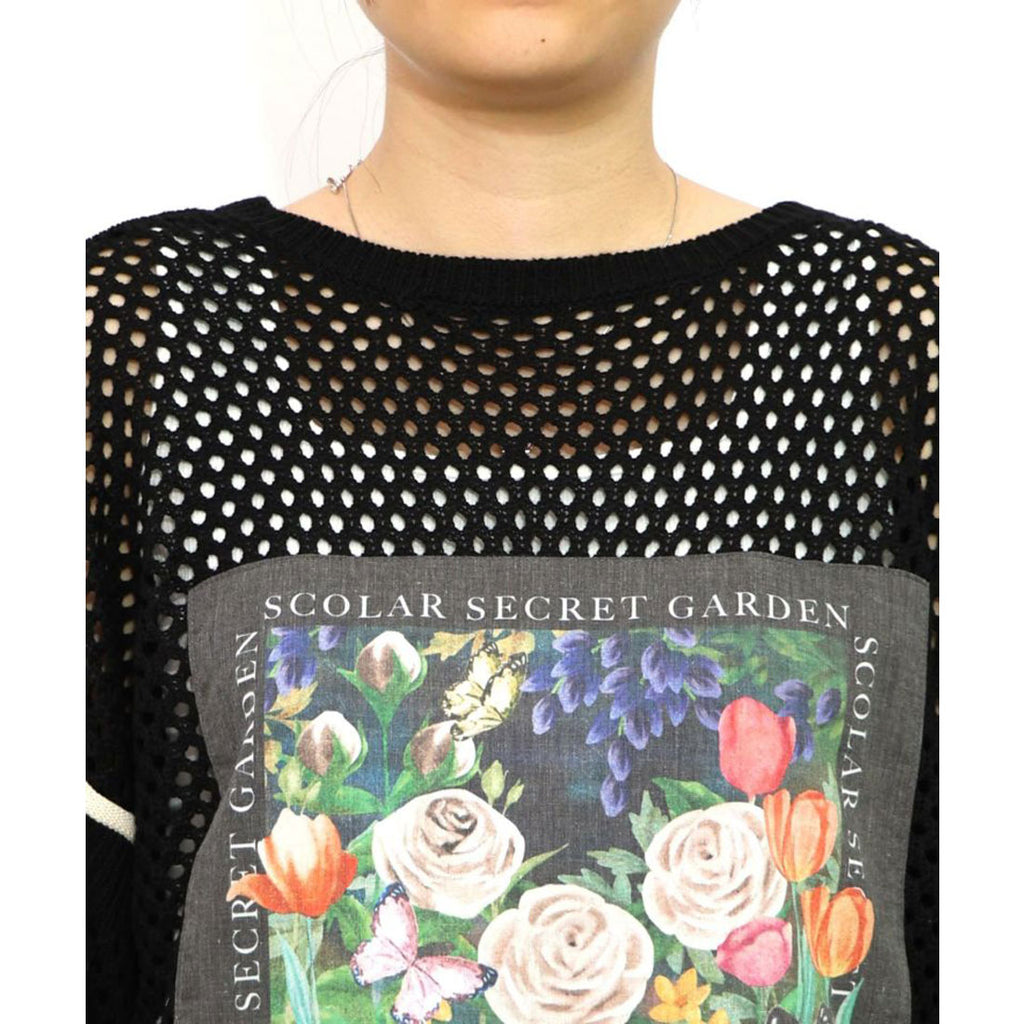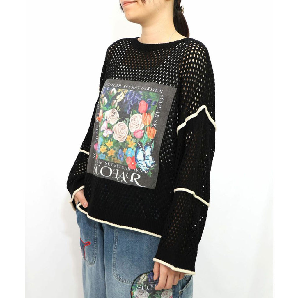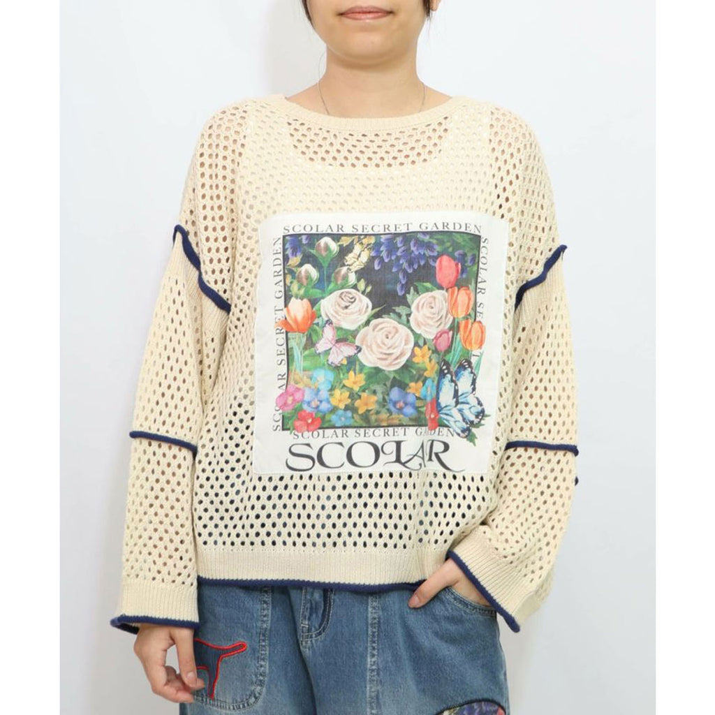 前後どちらを前にしても着られる、2WAY仕様のメッシュ編みのカーディガン。
