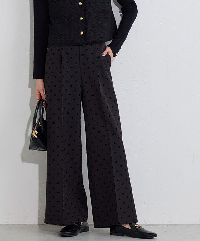 立体感がさりげなく映える“フロッキードットワイドパンツ”