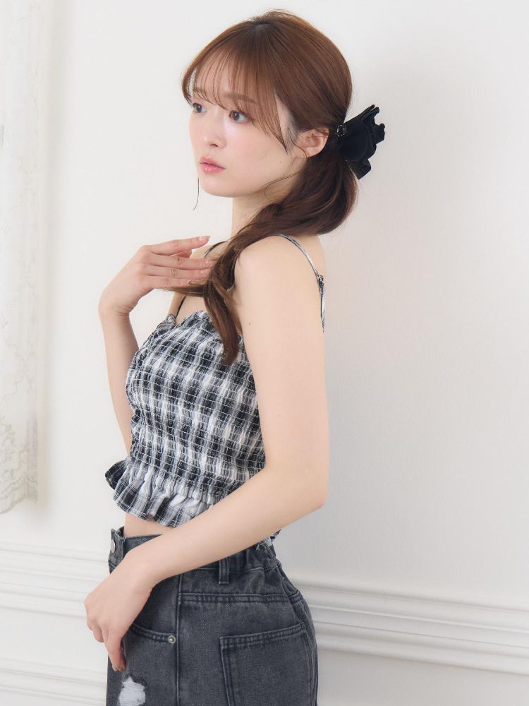 キャミソールは、フロント部分にシャーリングデザインが施されいてて