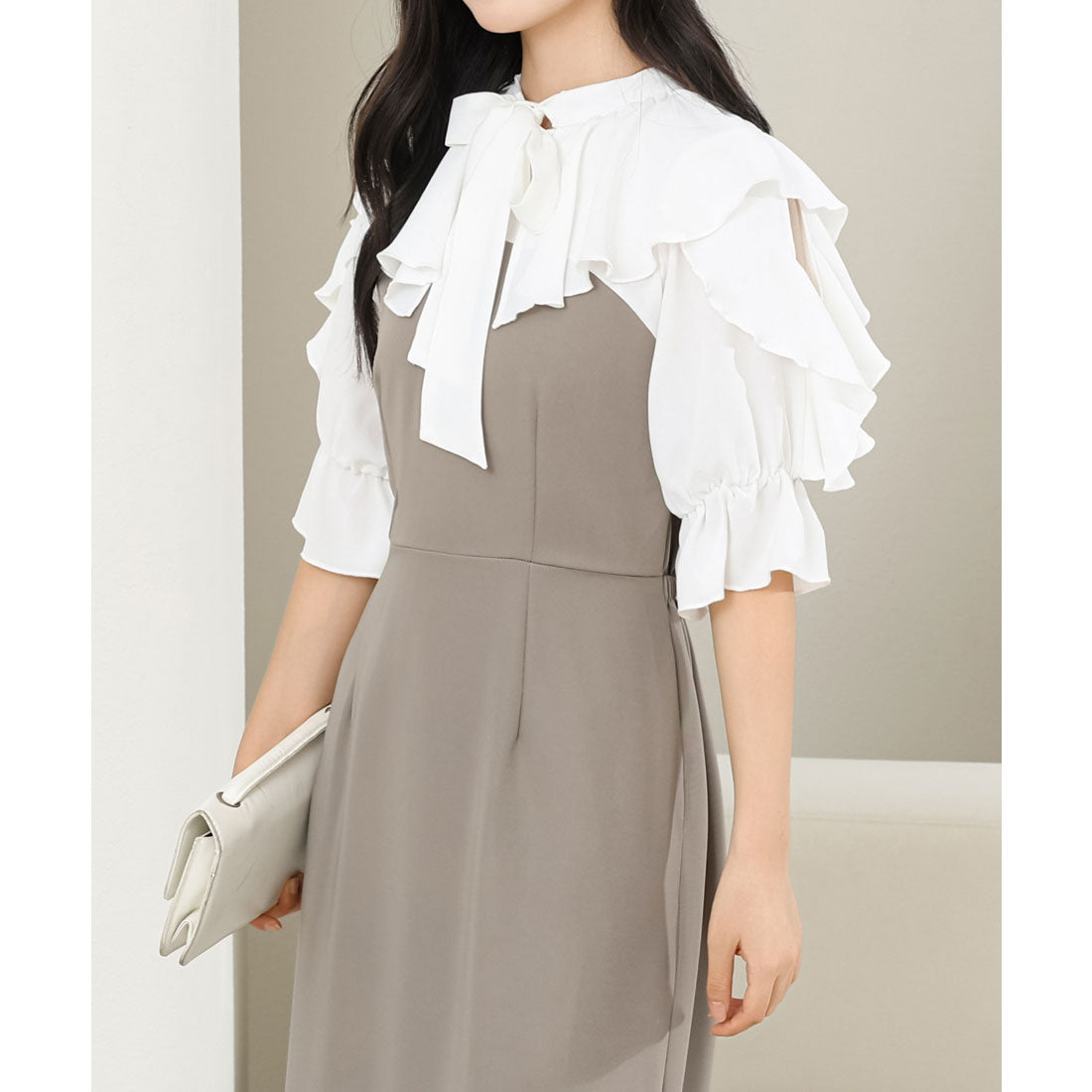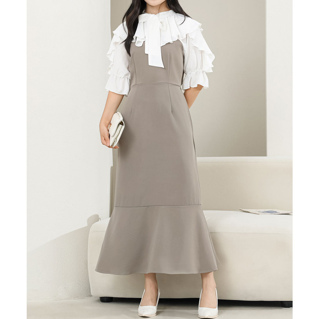 レースレディース Lace Ladies ボウタイ付き フリル カラー ドッキング マーメイド ワンピース