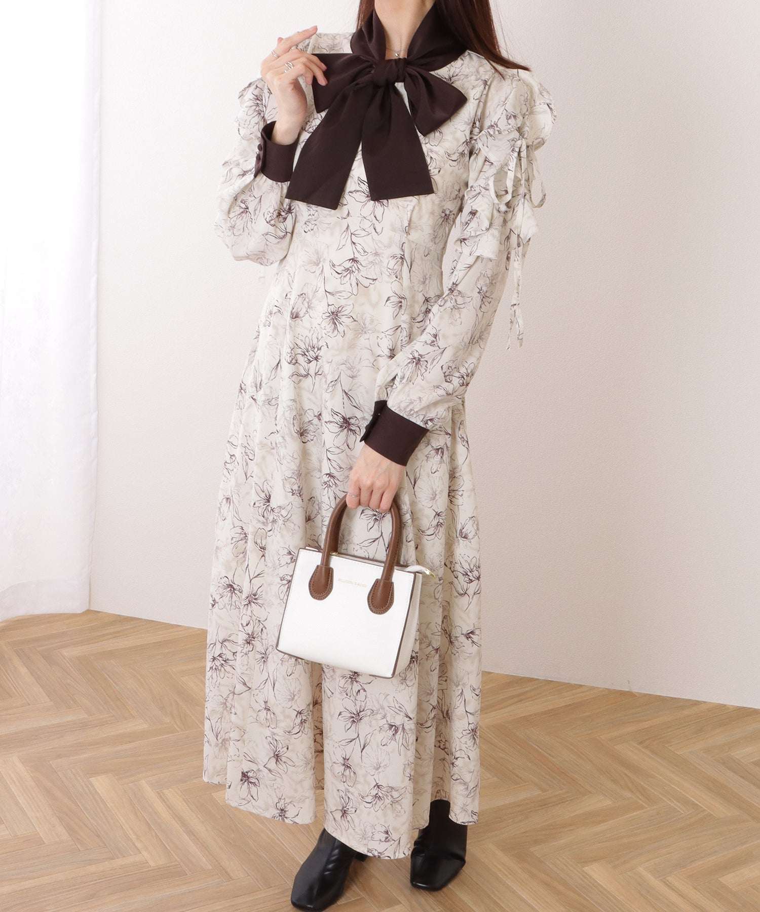 レースレディース Lace Ladies ボウタイ付き 配色 カットアウト ロング ワンピース