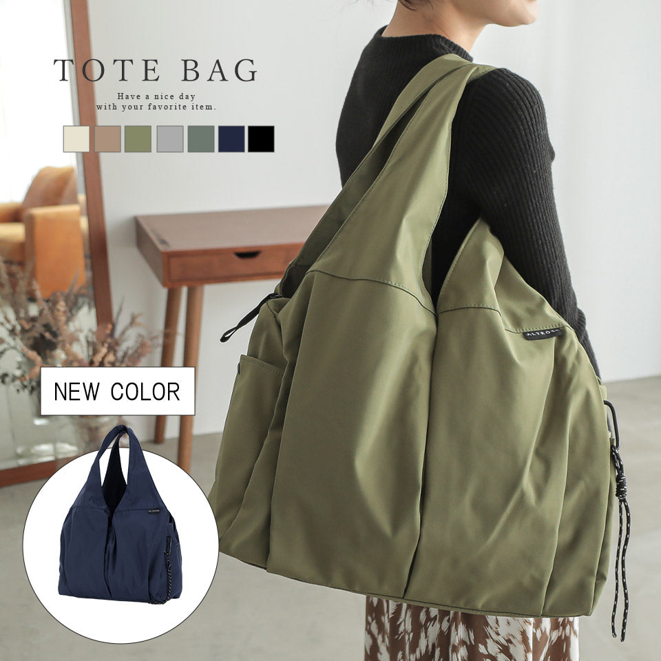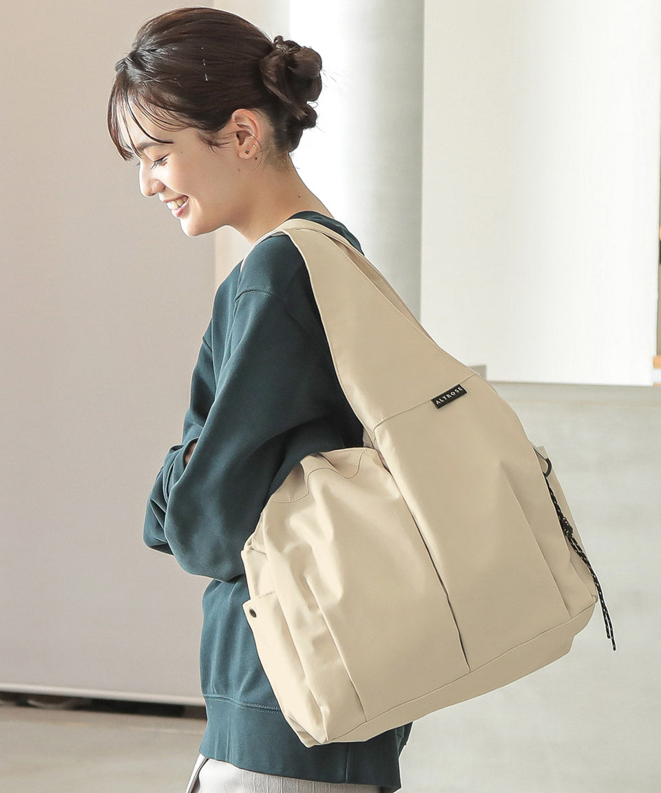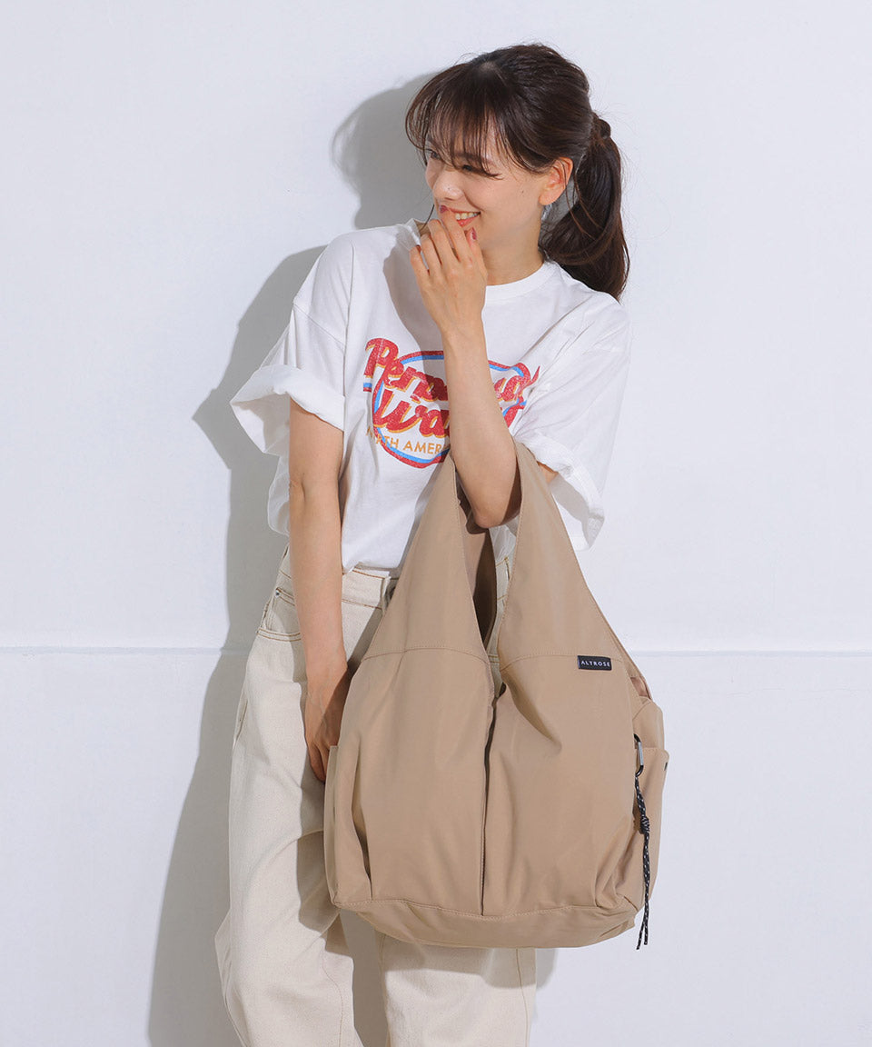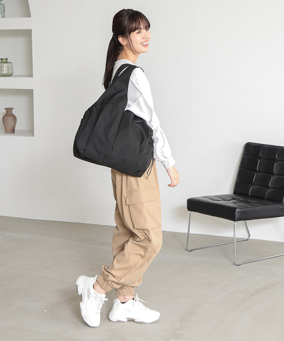 ナイロン素材でアクティブに使える大きめトートバッグ。