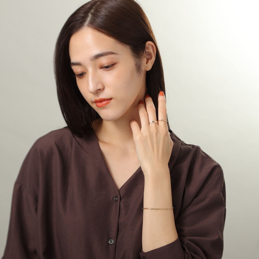 単品使いはもちろん、ボリュームリングとコーディネートことで、より旬の着こなしに。