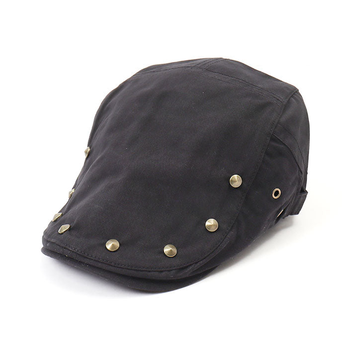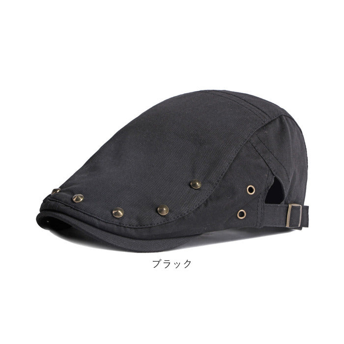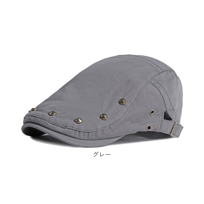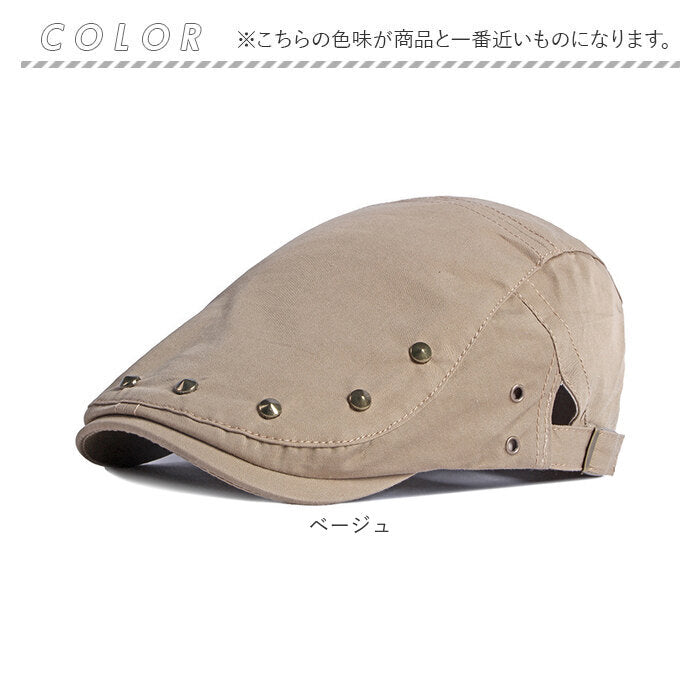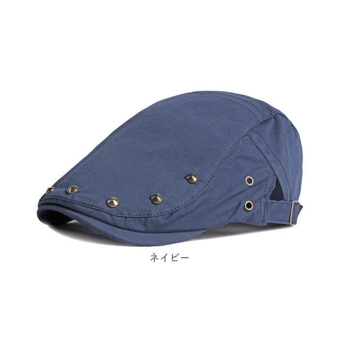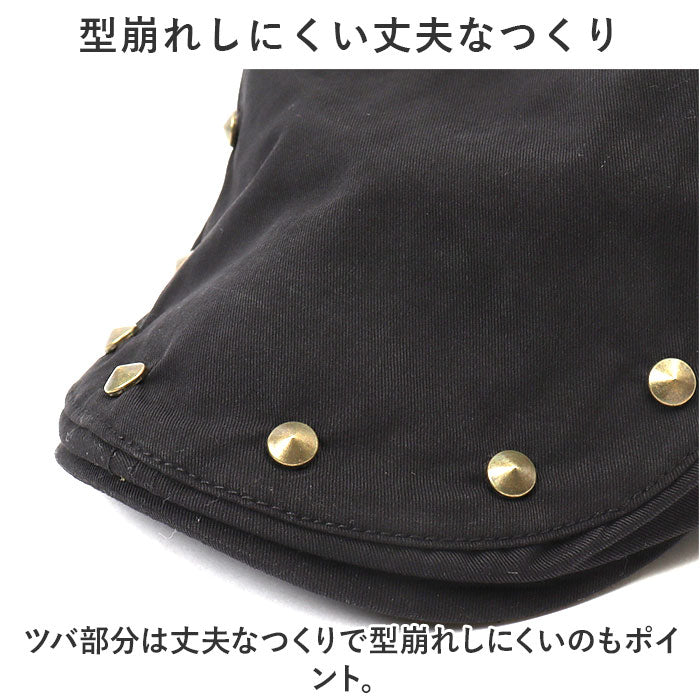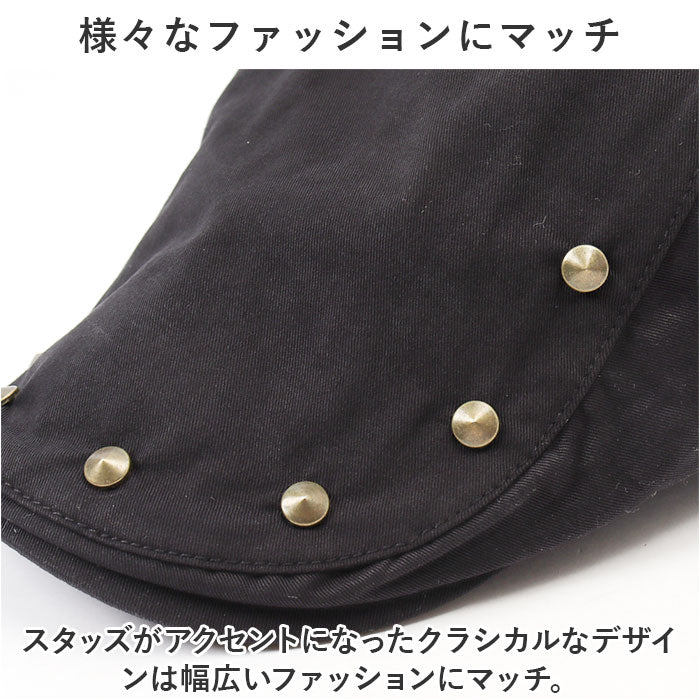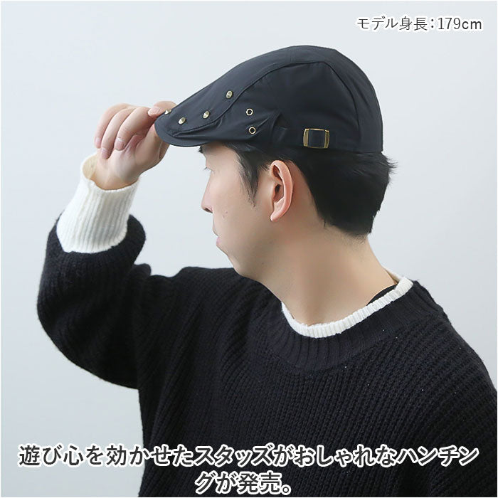 遊び心を効かせたスタッズがおしゃれなハンチングが発売。【ナチュラル感のある綿混紡素材】ナチュラル感があり、お手入れがしやすい綿混紡素材を使用。オールシーズン活躍するアイテム。【型崩れしにくい丈夫なつくり】ツバ部分は丈夫なつくりで型崩れしにくいのもポイント。【フィット感の調節OK】両サイドのアジャスターベルトでフィット感の調節OK。【様々なファッションにマッチ】スタッズがアクセントになったクラシカルなデザインは幅広いファッションにマッチ。【スッキリシルエットで幅広い年代に】落ち着きのある無地のベーシックカラーとスッキリしたシルエット。ユニセックスで使用できるのでギフトにもおすすめ。