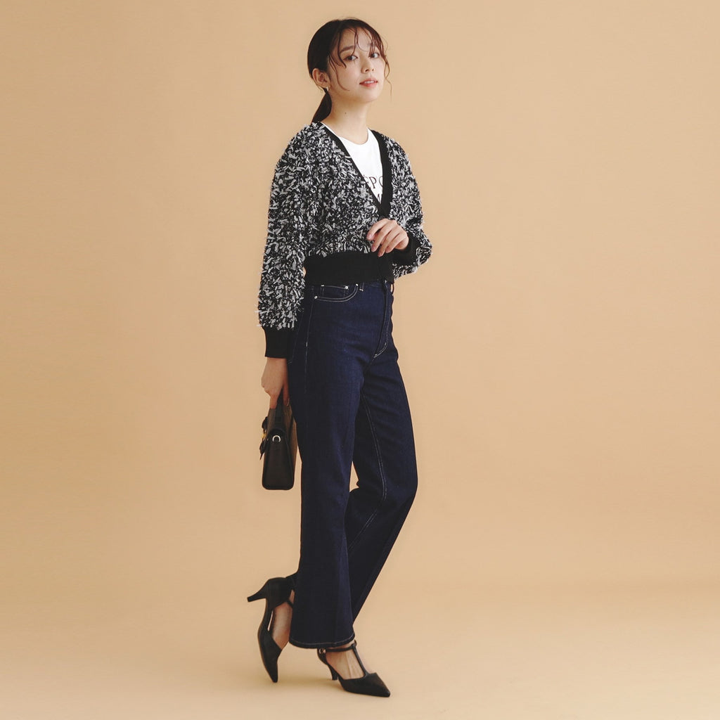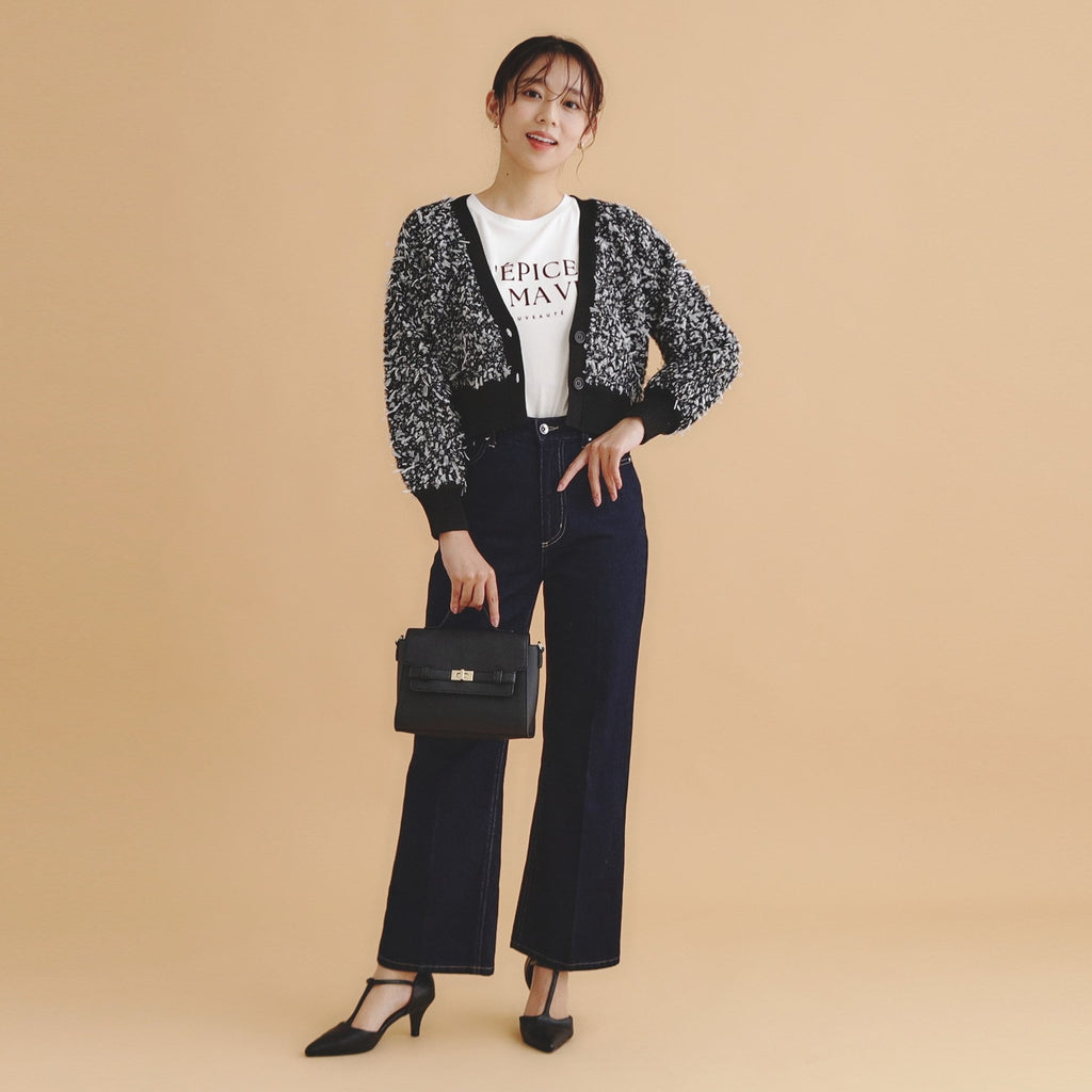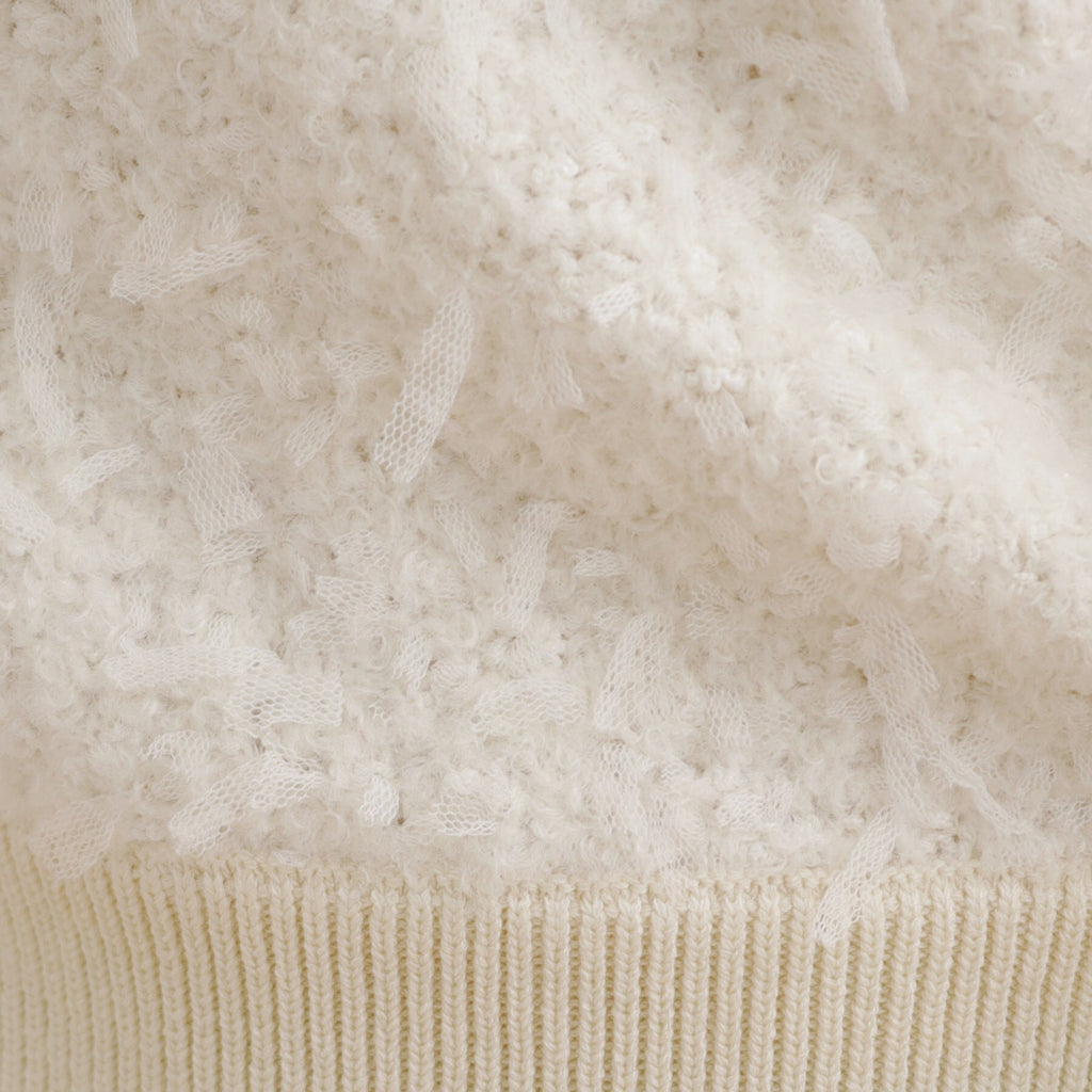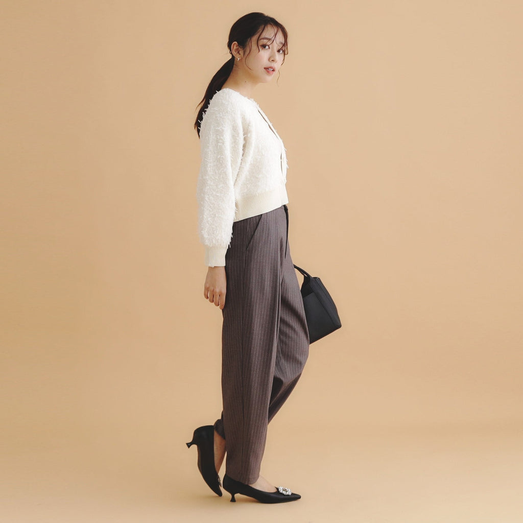 ・チュールフラッグのもこもこの糸を使用した、深Vネックの短丈ニットカーディガンです。