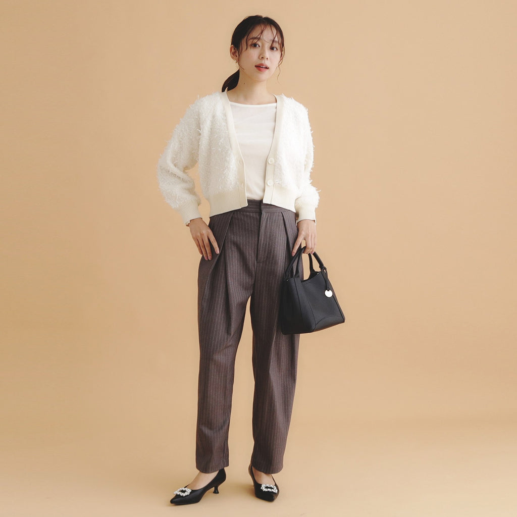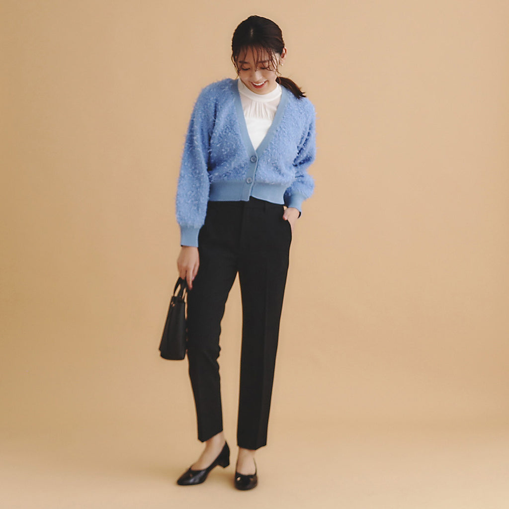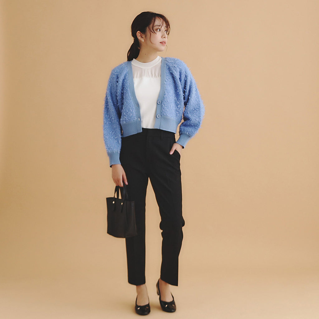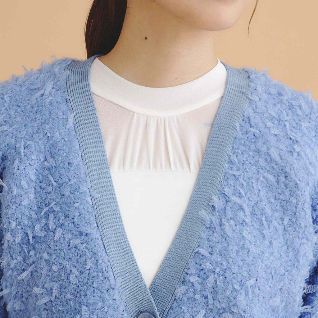 毛足の長いチュールフラッグのもこもこが可愛いVネックカーディガン