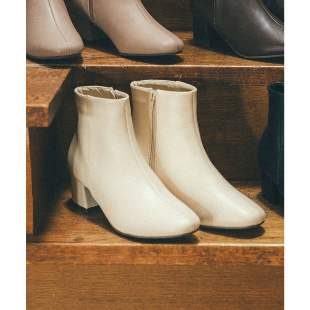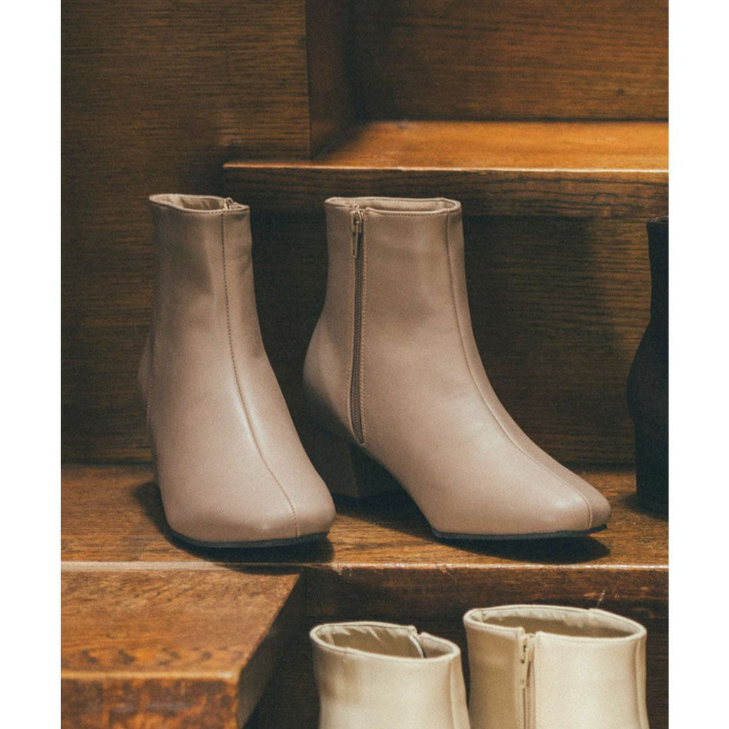 実寸 | ヒールの型:太めヒール, トゥタイプ:スクエア, クロージング:ジッパー |