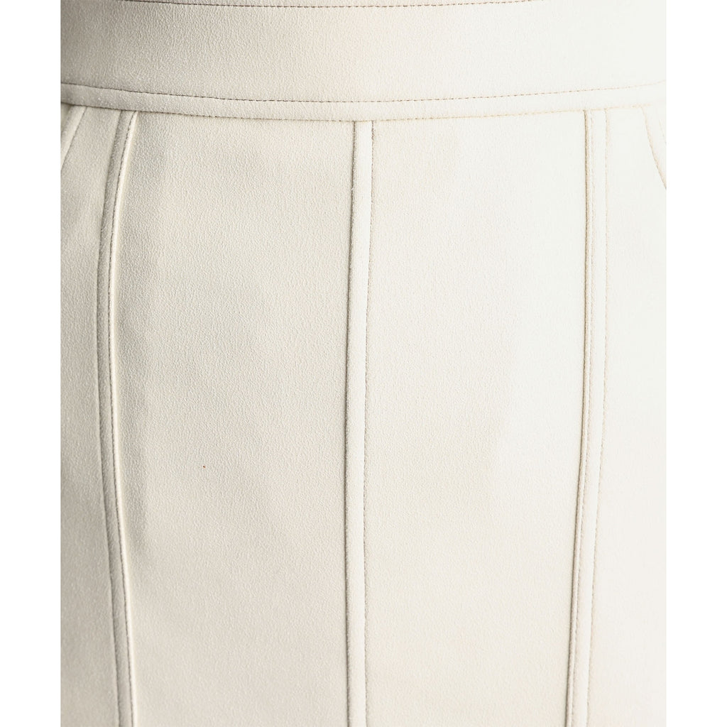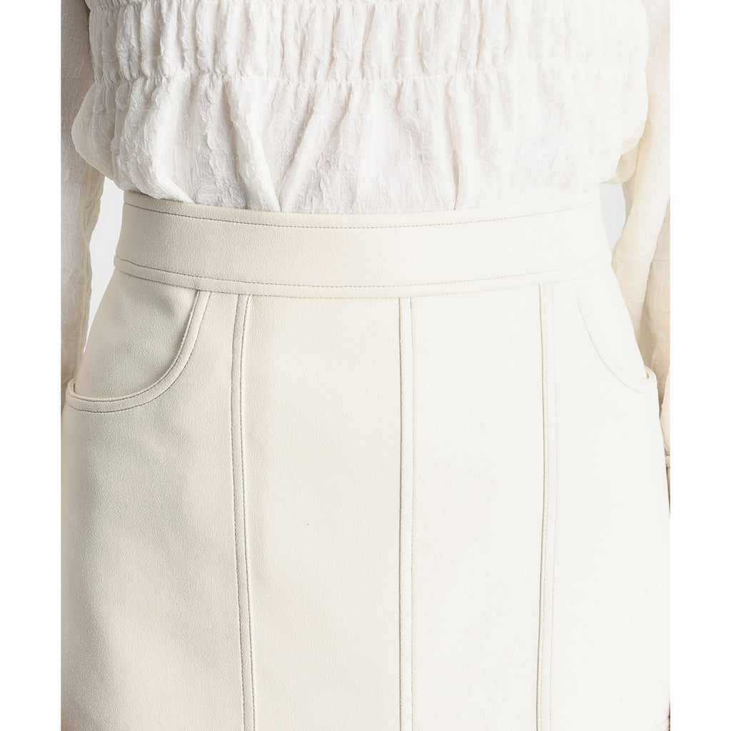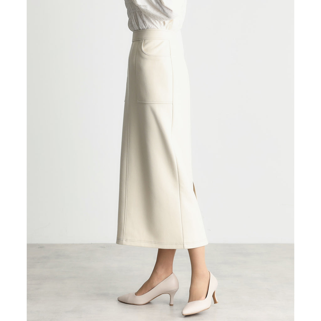 まるでレザーのようにプリントされた質感が印象的なスカートは、タイトなシルエットが美しいラインを生み出します。