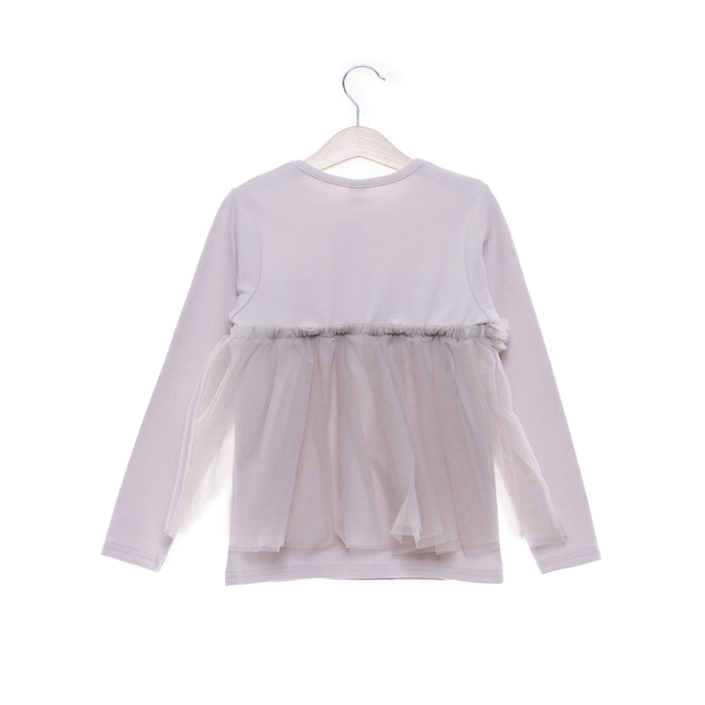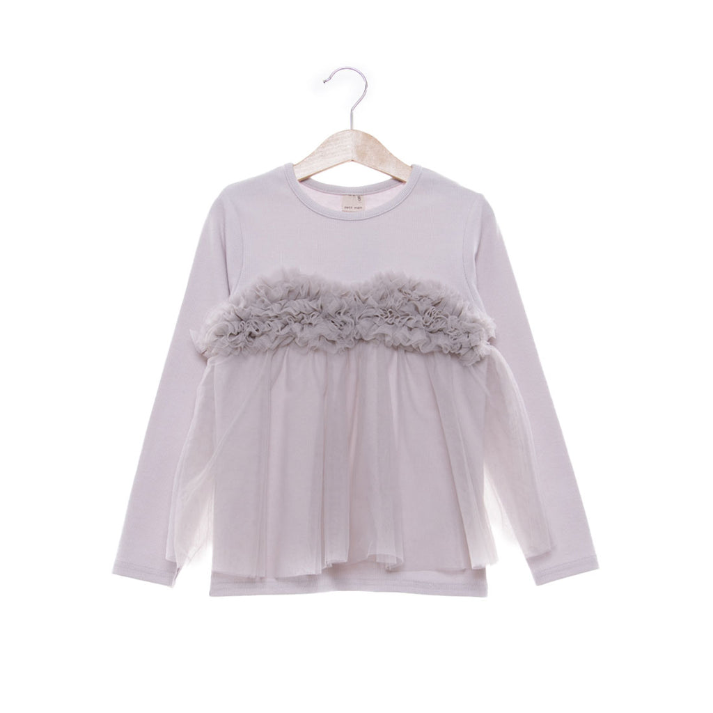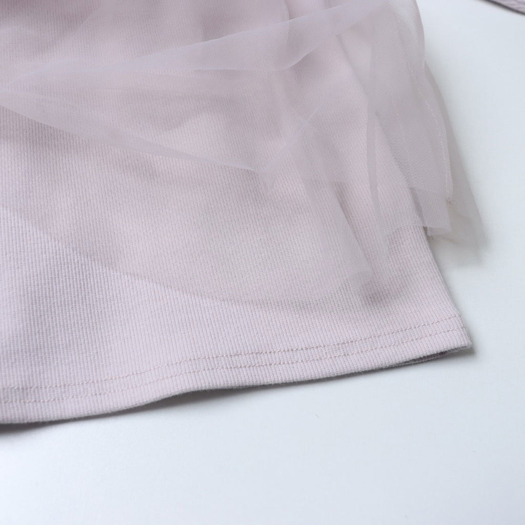 ぐるりと巻きついたチュールが華やかな長袖Tシャツです。