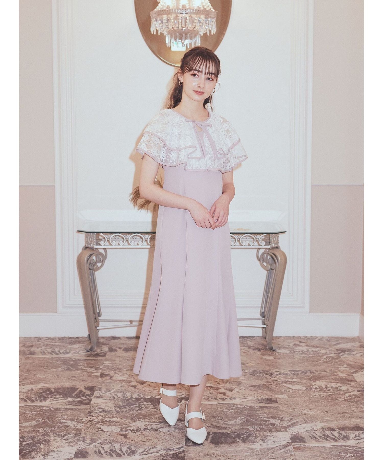 華やかなパイピングのレースボレロとキャミワンピースの嬉しい2点セットです♪